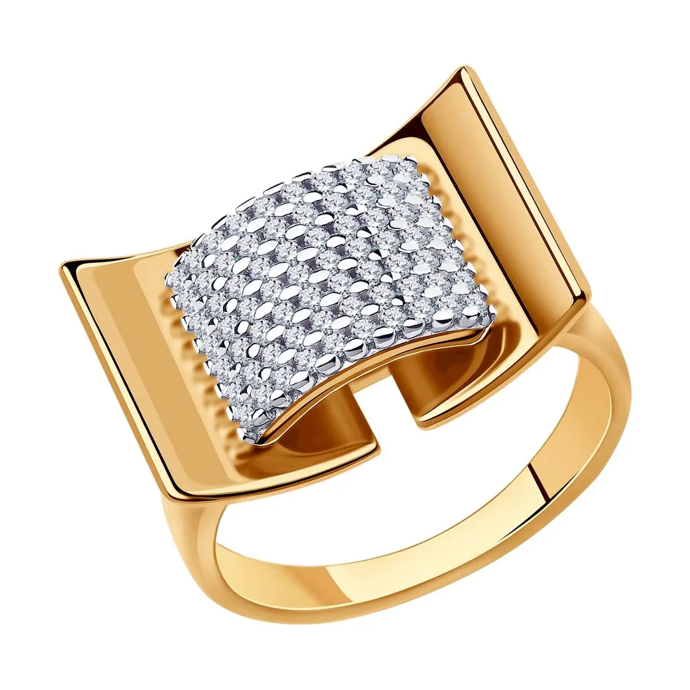 Кольцо SOKOLOV из золочёного серебра с фианитами, Серебро, 925, Женское, Оригинальная продукция