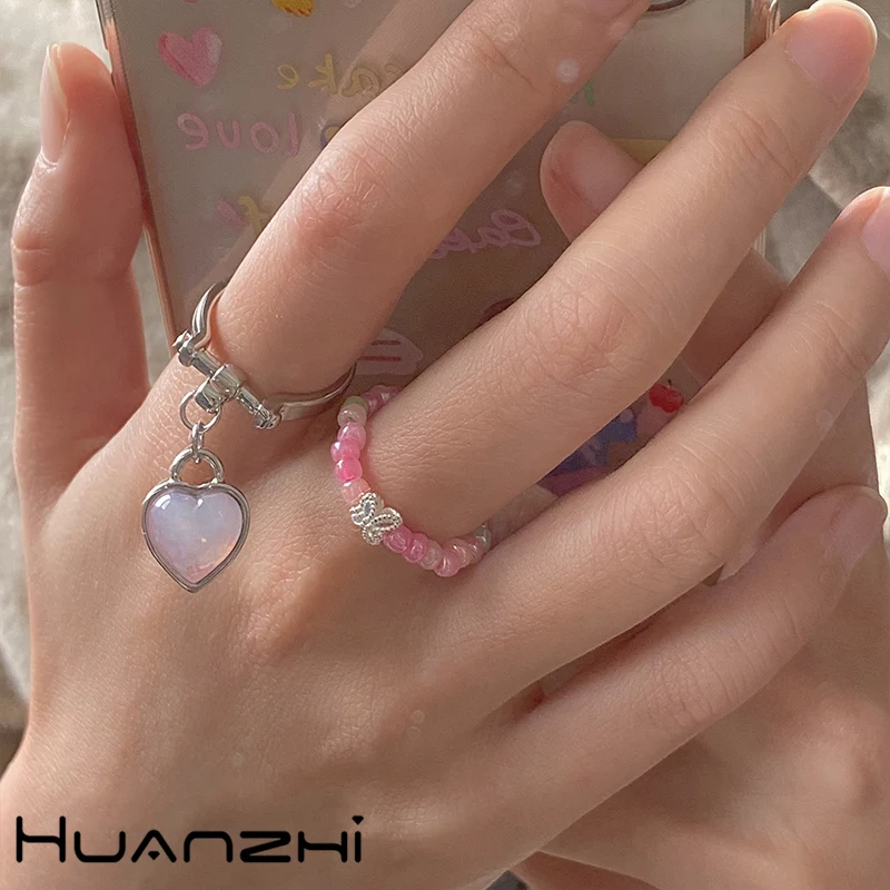 HUANZHI 2020 новый тренд подвеска в виде сердца ремень посеребренный цвет винтажная бусина бабочка металлические кольца для женщин девушек ювелирные изделия