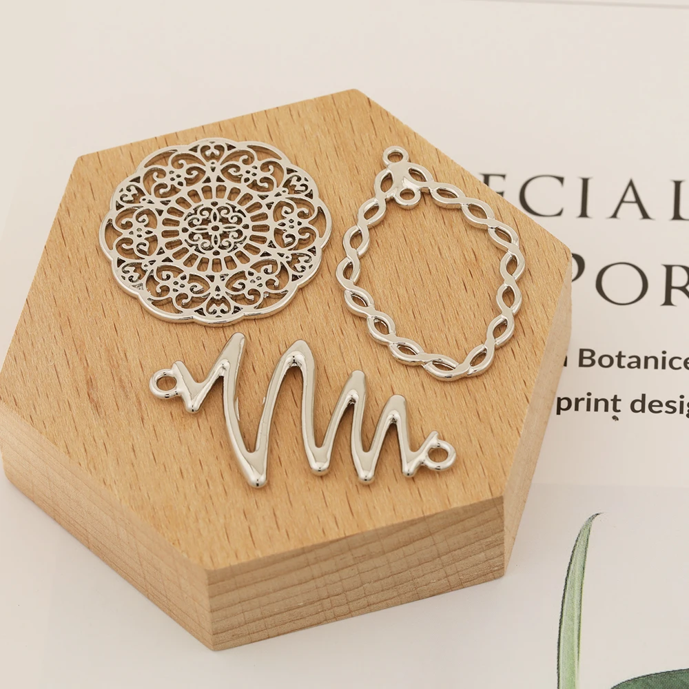 Шармы из цинкового сплава HAOSAW Choose 6 шт.лотизогнутый цветочный дизайнволнистый Соединительцвета родияАксессуары для ювелирных изделийфурнитура для сережек