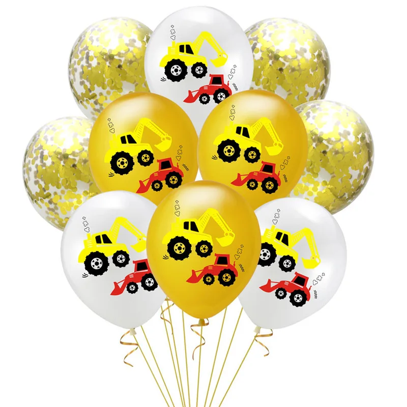 10 шт 12 дюймов латексные шары инженерный грузовик экскаватор конфетти блесток воздушные шары День рождения украшения принадлежности для детей