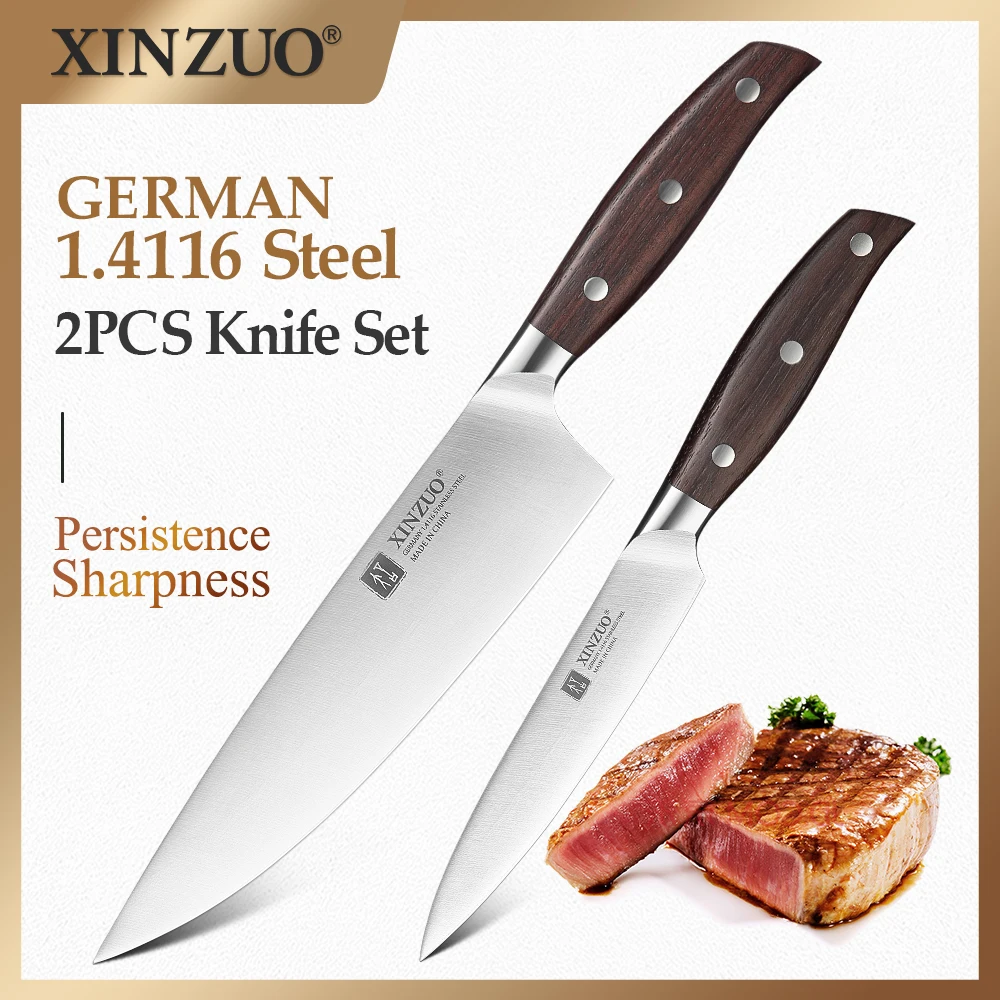 Набор кухонных ножей XINZUO из нержавеющей стали, 2 шт., Германия, 1.4116, кухонный инструмент, острый утилитный шеф-нож, Красное сандаловое дерево, Hande