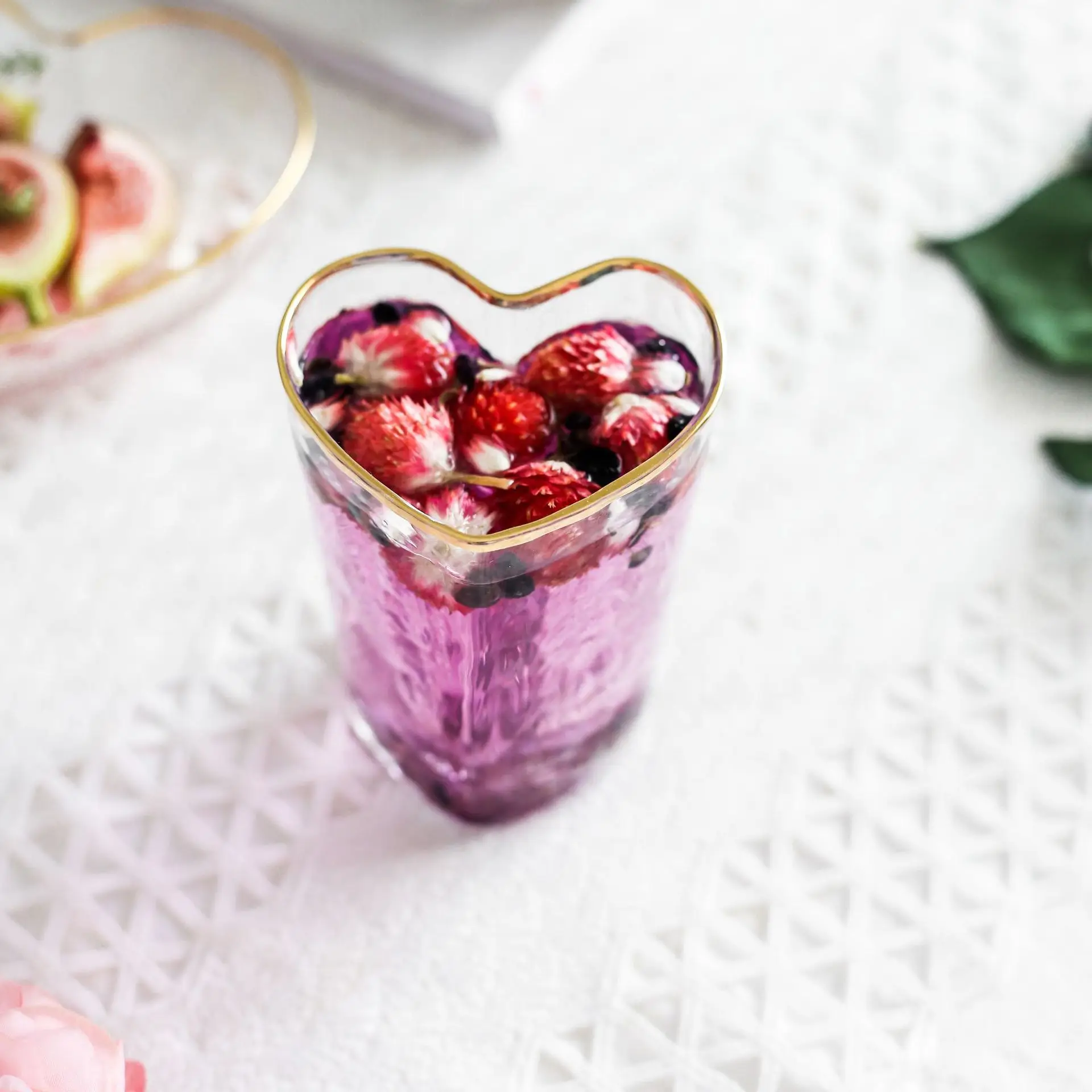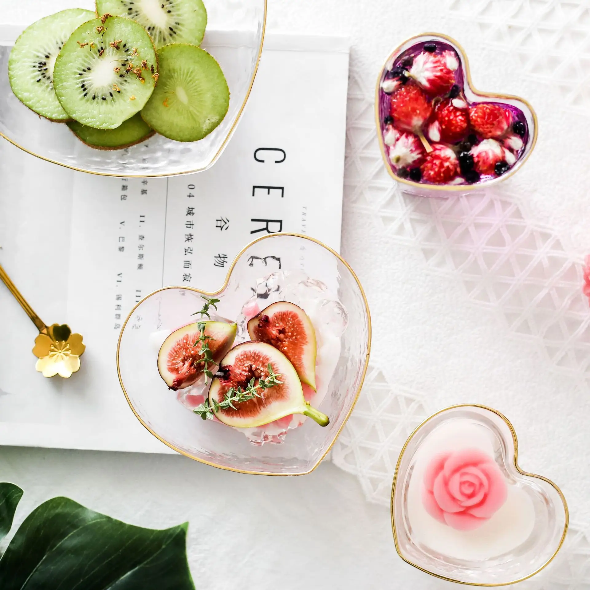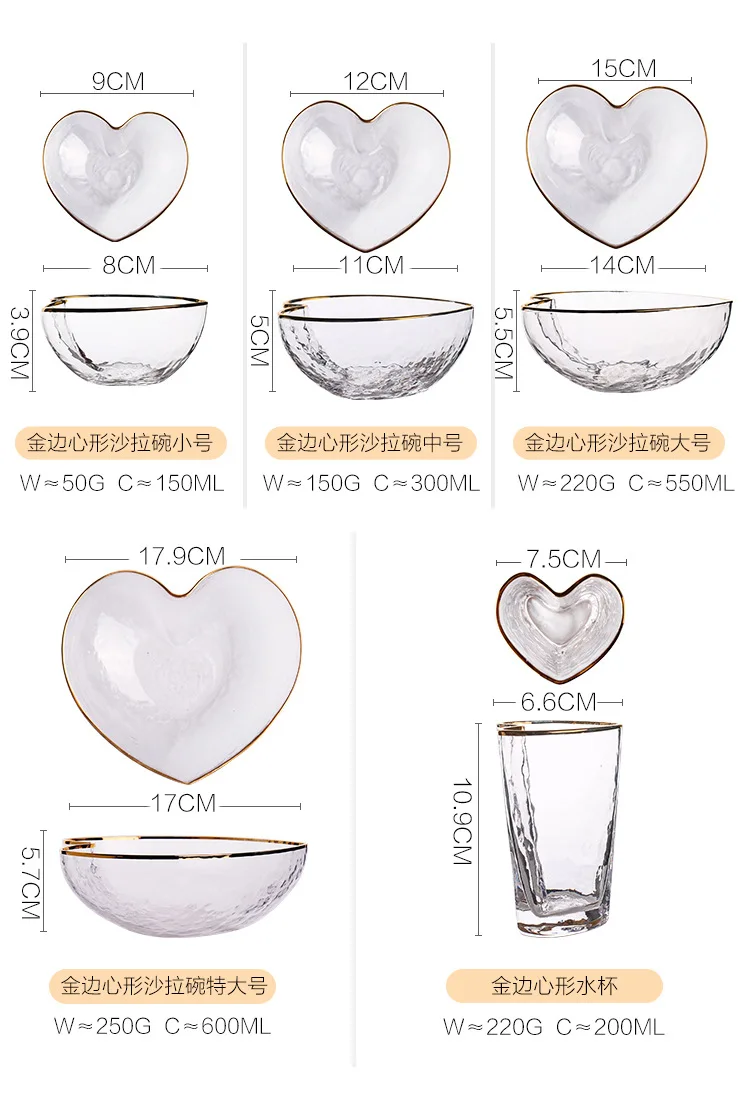 Стеклянные чаши и чашки в форме сердца с золотой оправой в японском стиле, пищевые салаты, овса, фрукты, десерты, Снэк, чашка для воды, молока, чая