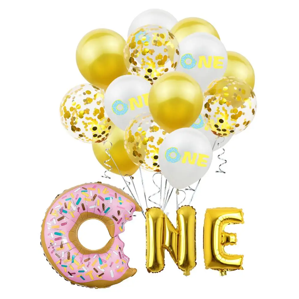 Воздушный шар из алюминиевой фольги в форме пончика, 16 дюймов, праздничные украшения: воздушные шары на день рождения 1 года