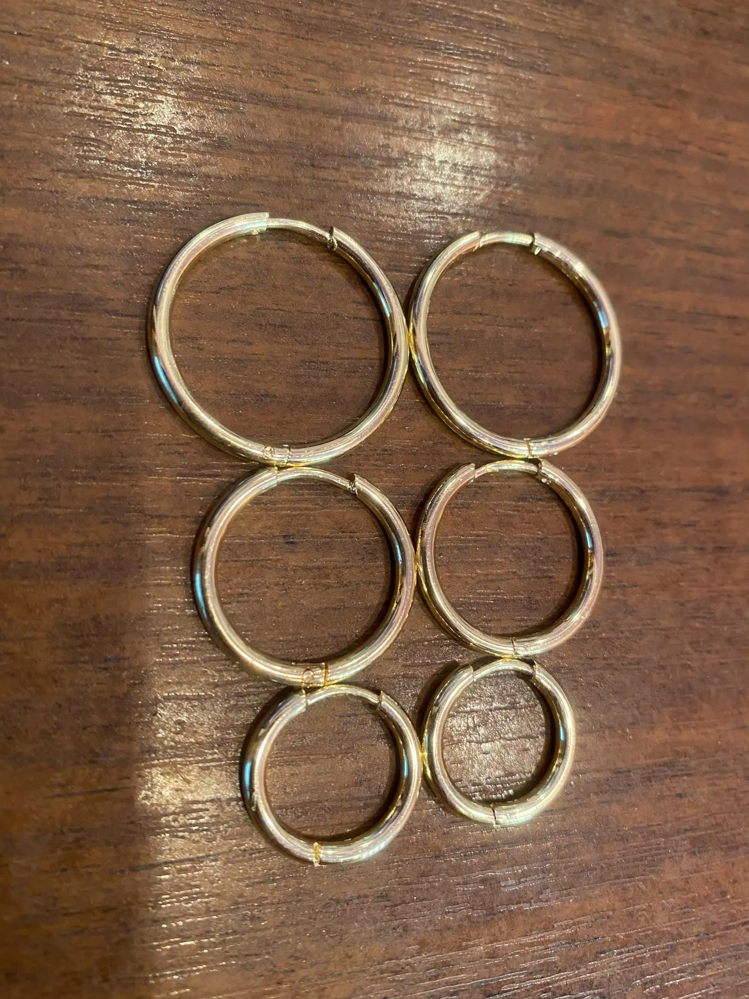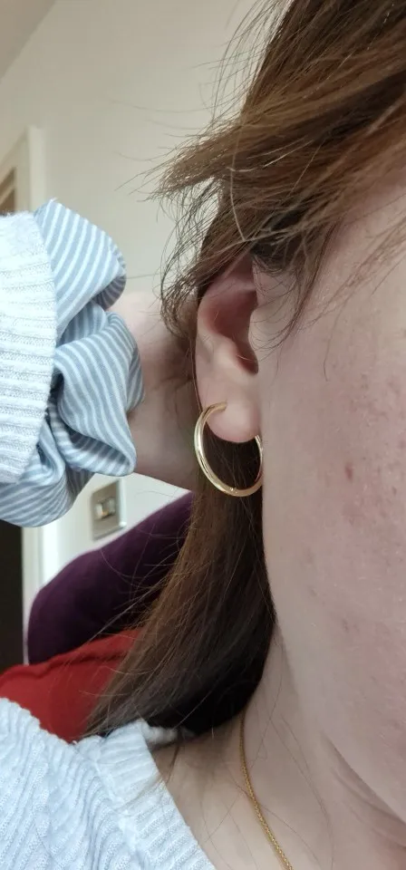 Серьги в целом хорошие, приятно тяжеленькие. У меня диаметр 22мм, ширина трубы 5мм. Единственное в месте механизма, где открывается ржавчина, не знаю что с ними будет потом. В плане аллергии, у меня на метал аллергия обычно, эти серьги день проносила, на удивление нормально все, так что спасибо.