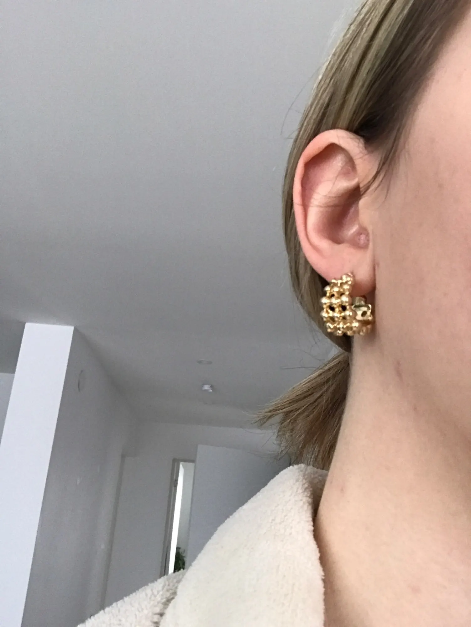 очень красивые трендовые серьги, немного тяжёленькие но это не критично, качество вроде хорошее. потом отпишусь дают ли они аллергию, пока мне все нравится