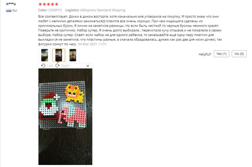 отличные бусины, склеиваются прекрасно, выглядят как оригинал 1 в 1. Единственное, что пластиковая панель(их 2 в комплекте), "кривая" на ней невозможно собирать фигуры, все сразу разваливается. Для нас не критично - у дочки есть от оригинала