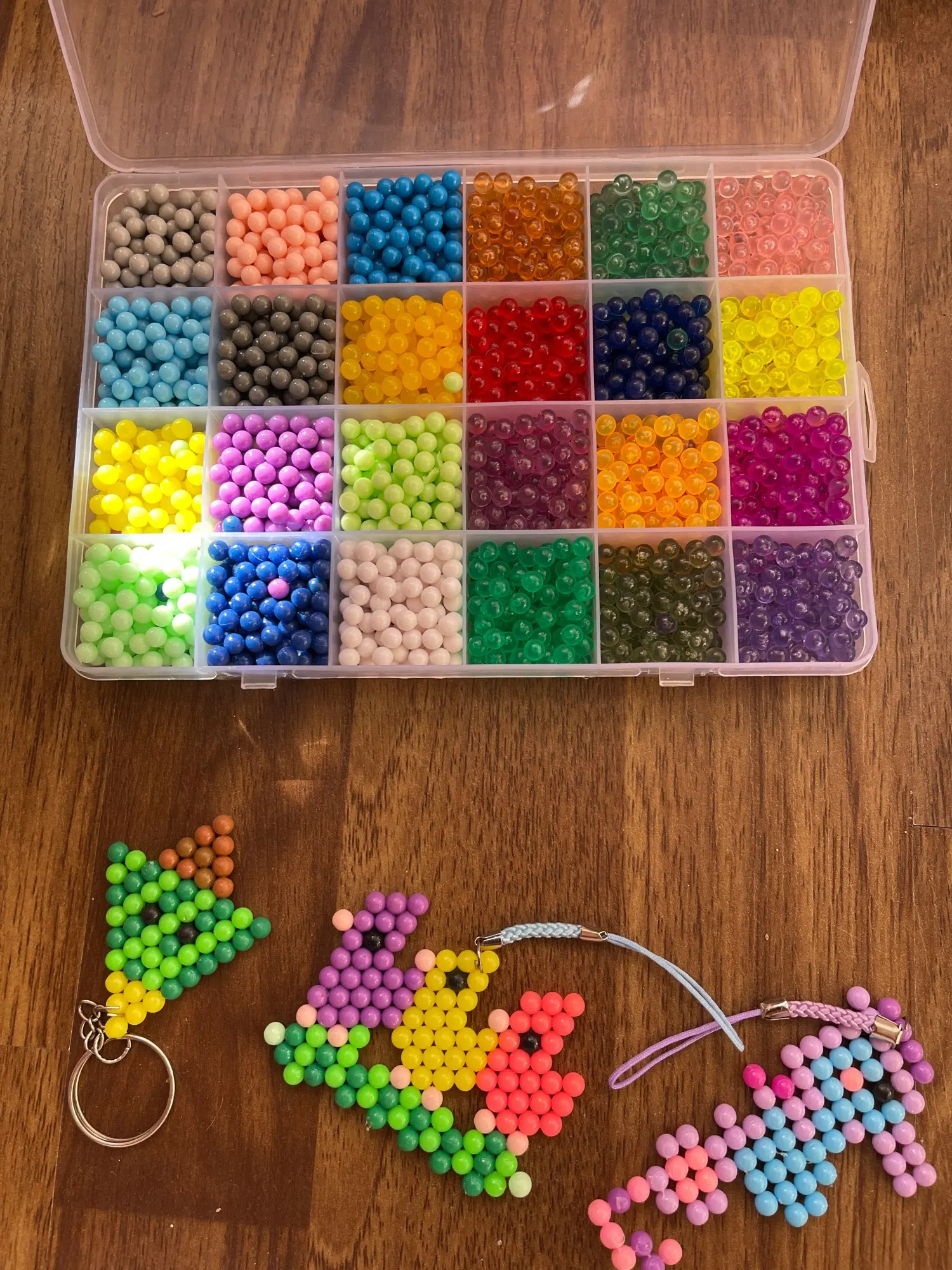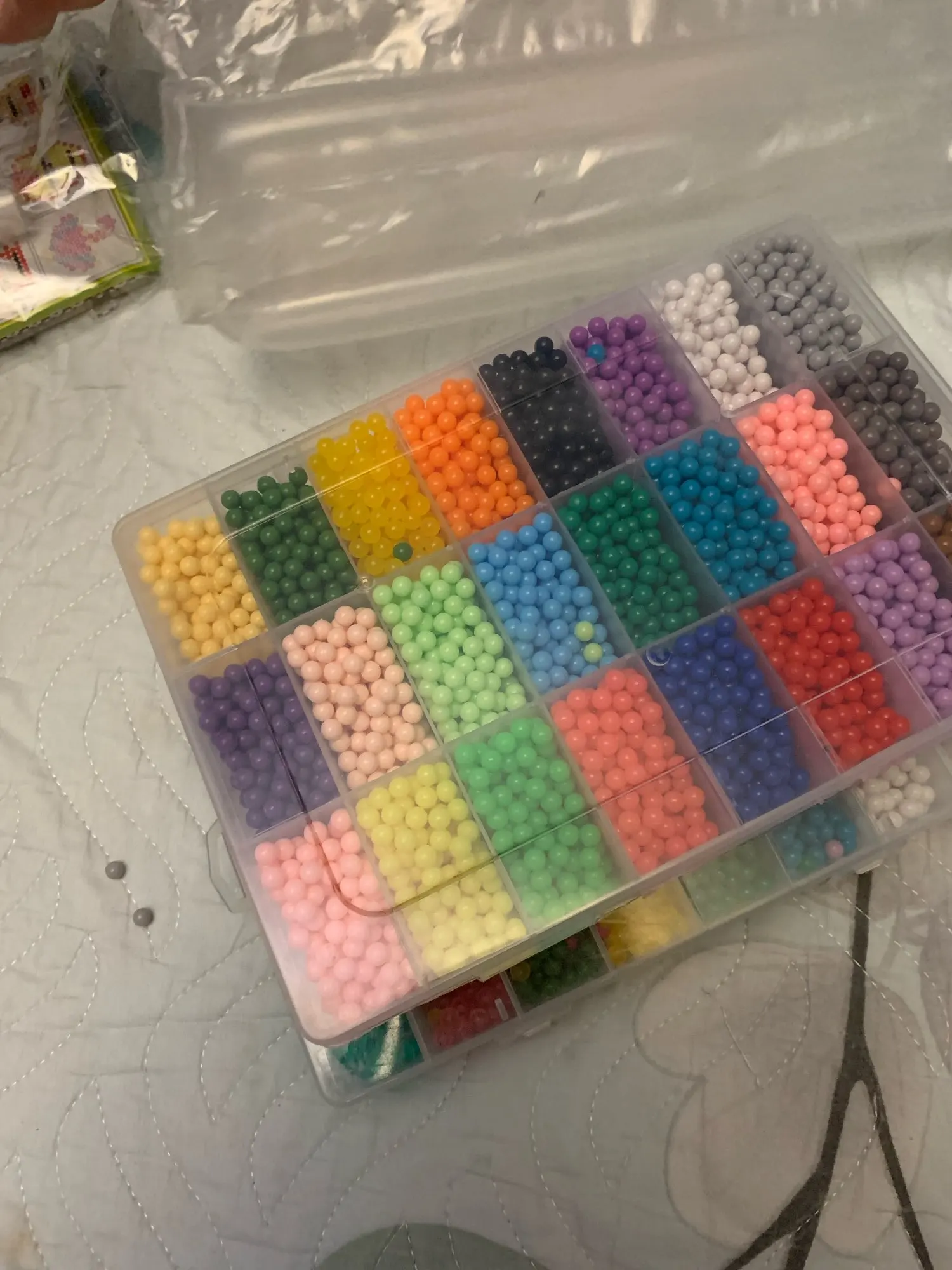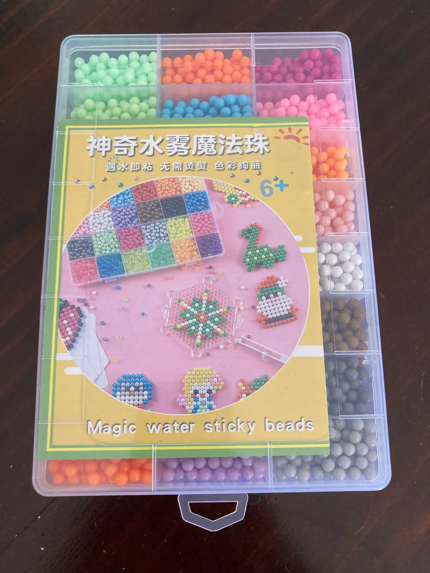 ребёнок залип на несколько часов. а потом высыпал все бусины в коробку))))пришлось разбирать. сама коробка для хранения не очень удобна,пересыпала в баночки