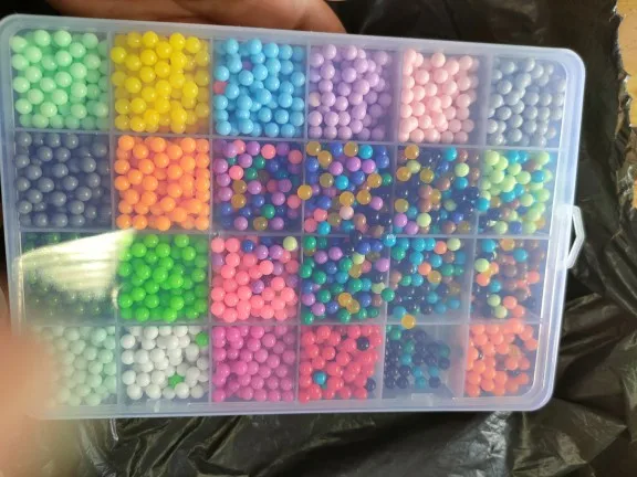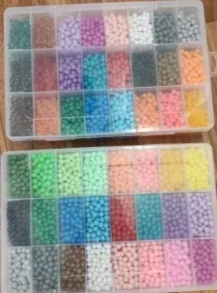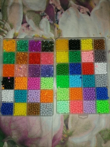 не все цвета совпали с картинкой. ждали больше прозрачных, еще и коробку при доставке разбили, а внешний пакет был запаян неплотно. через щели в нем все высыпалось. очень обидно!!! бусин из разбитой ячейки осталось меньше 1/3 части, только то, что прилопло к скотчу. а ведь брали на подарок... еще в некоторых ячейках явно не доложили бусинки. на глаз видна разница - какие-то ячейки до верху наполнены, какие-то с пустотойи шарики болтаются там((((