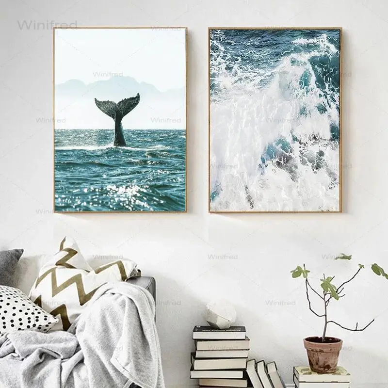 Современный Морской пейзаж, морские волны, Настенная картина на холсте, китовый хвост, плакаты и принты, настенные картины для гостиной, домашний декор
