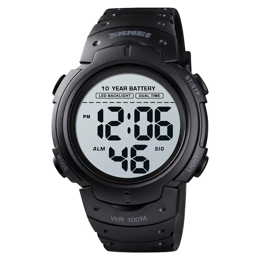 Мужские водонепроницаемые часы SKMEI 10 шт.лот, 100 м, большой дисплей, будильник, светодиодные цифровые мужские спортивные часы, оптовая продажа