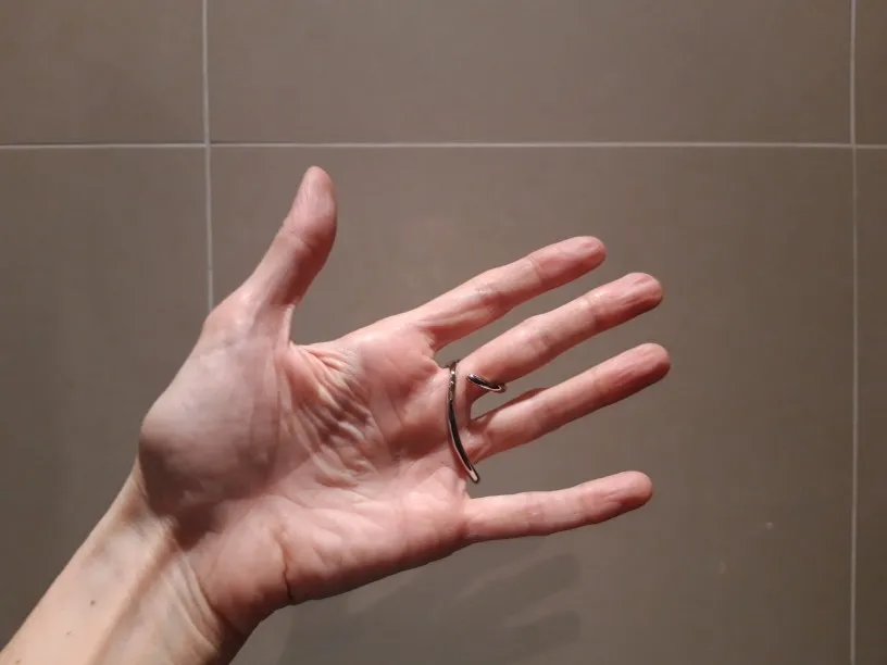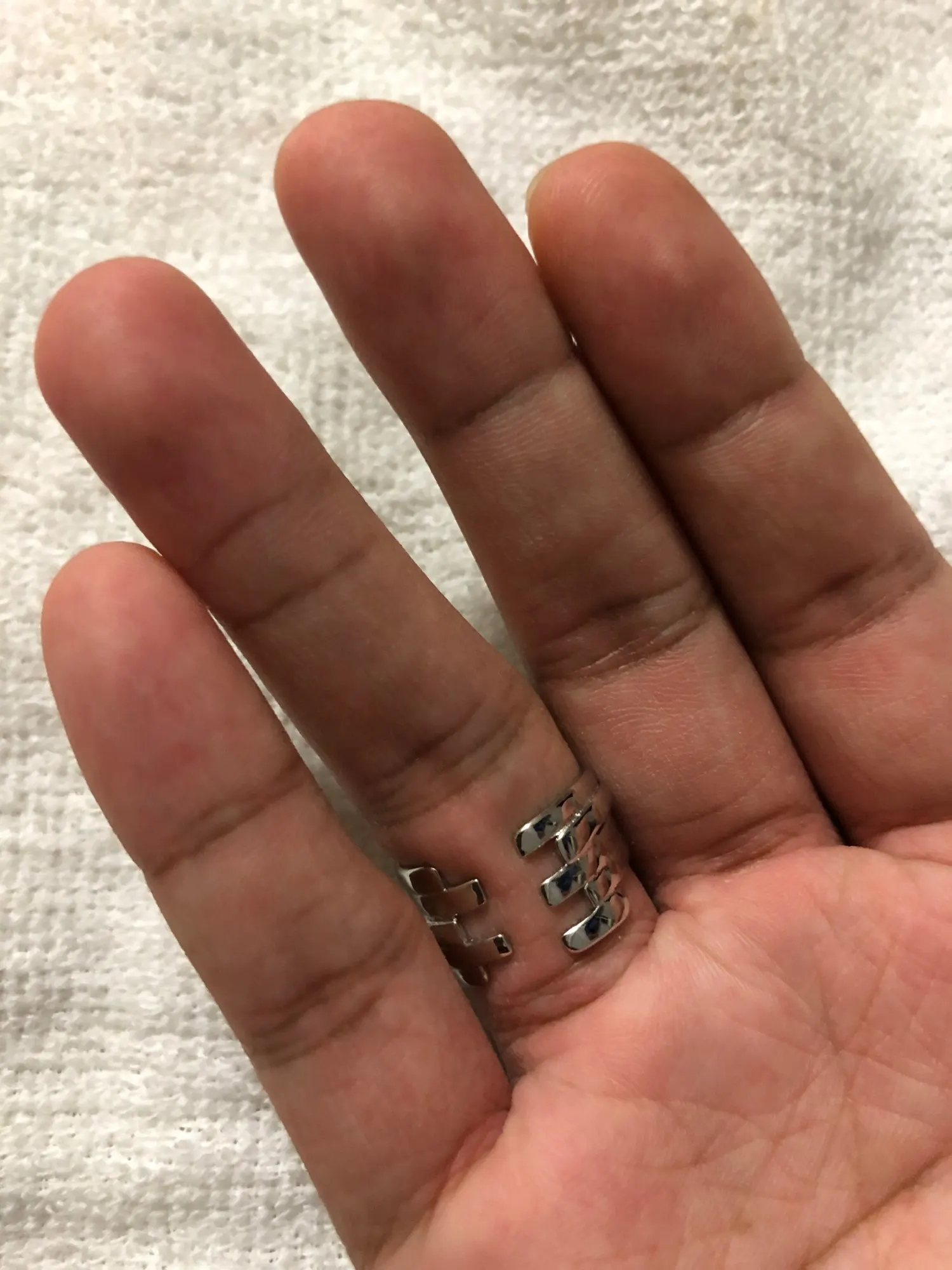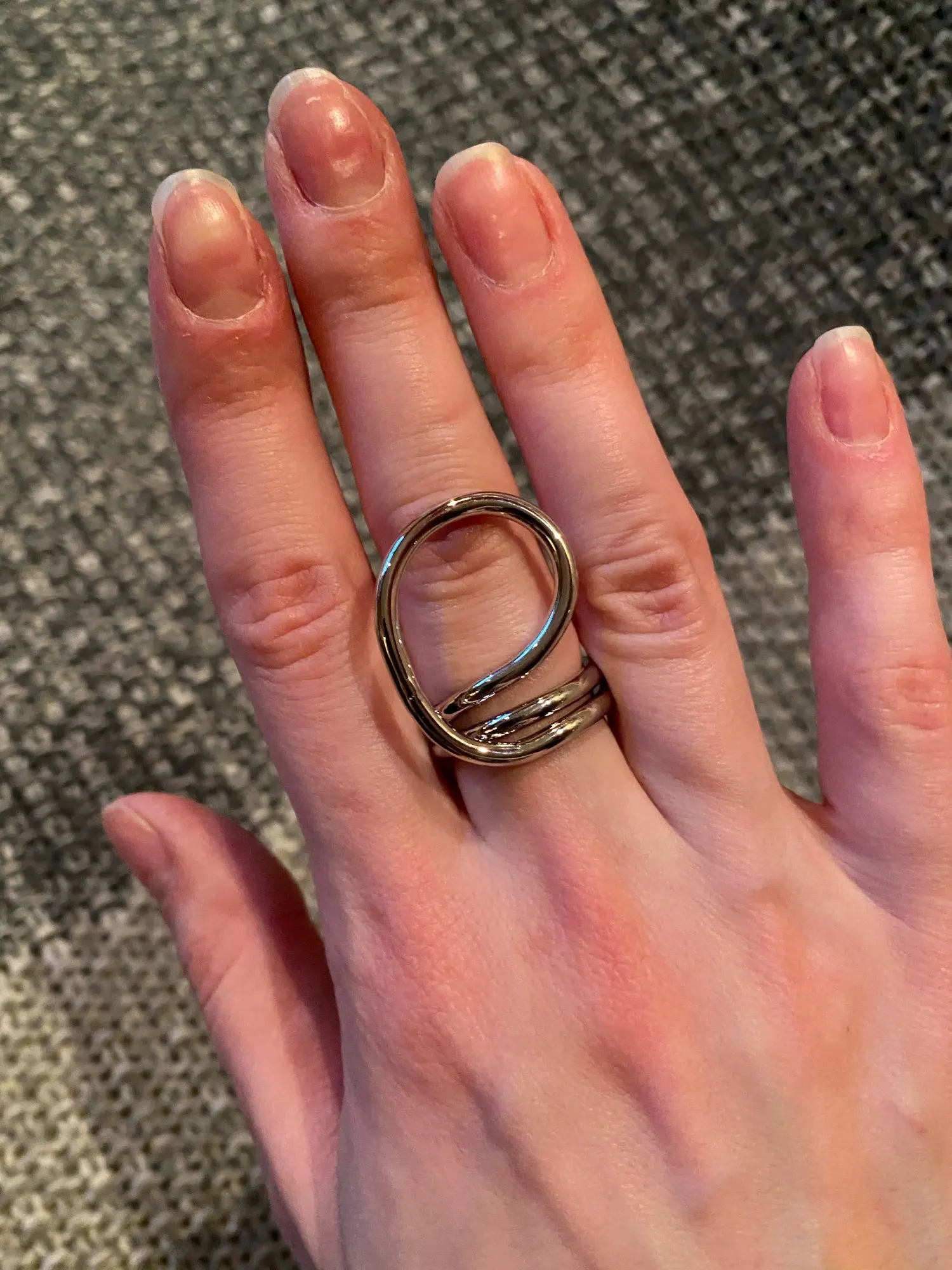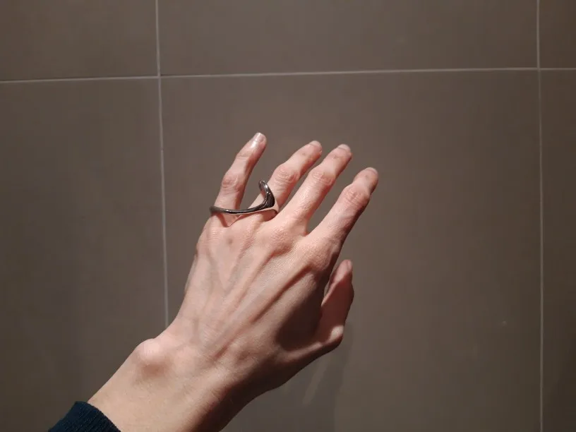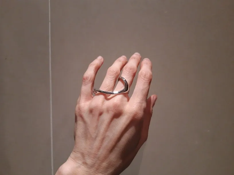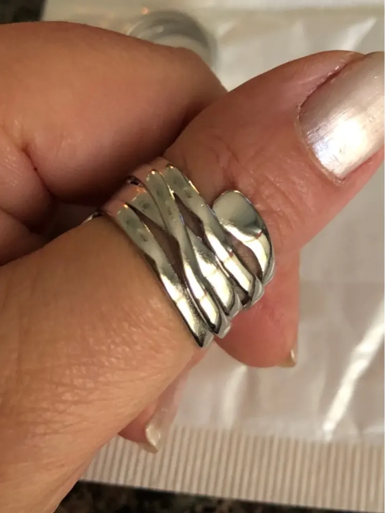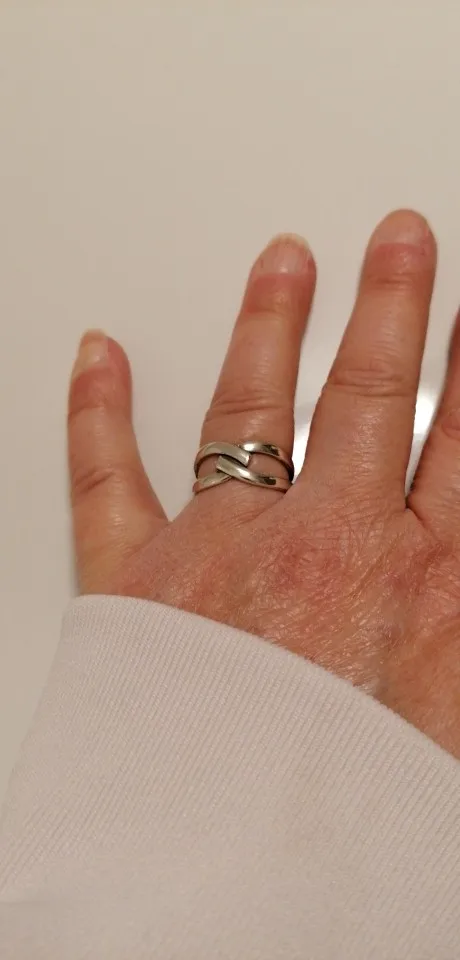 Кольцо красивое, не может регулировать размер, металл очень жесткий.