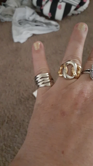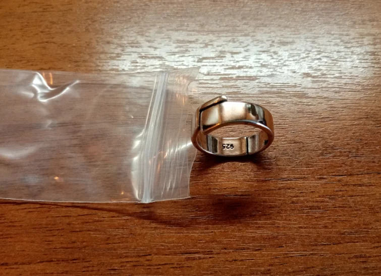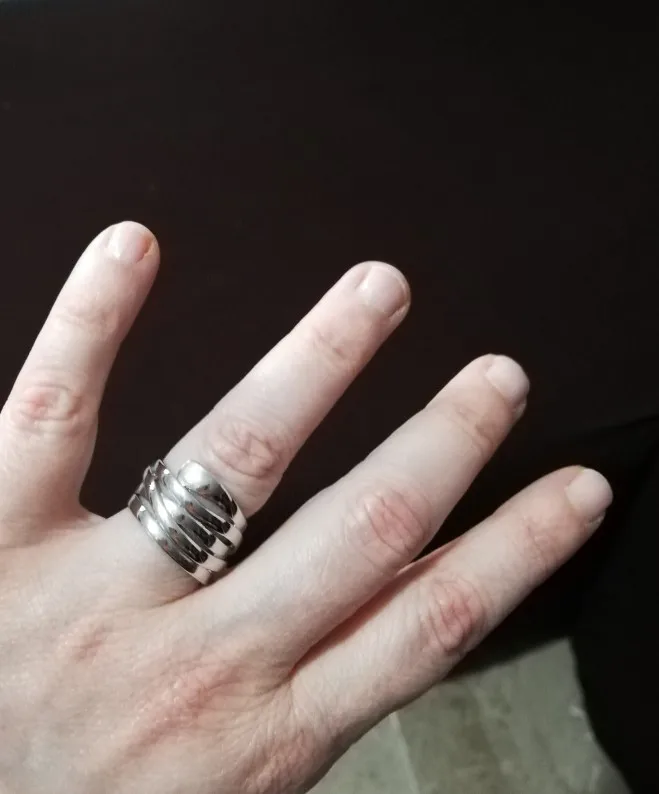 Кольцо хорошее, громоздкое, как на картинке. Из трех заказанных колец самое большое по размеру. Где то 17,5.