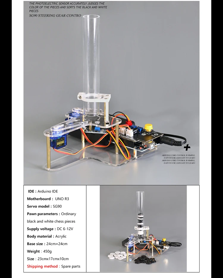 DIY Arduino, сортировщик цветов, черно-белые шахматные фигуры, сортировка, Обучающий набор arduino, Обучающий робот STEM