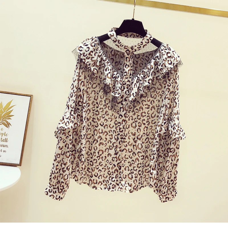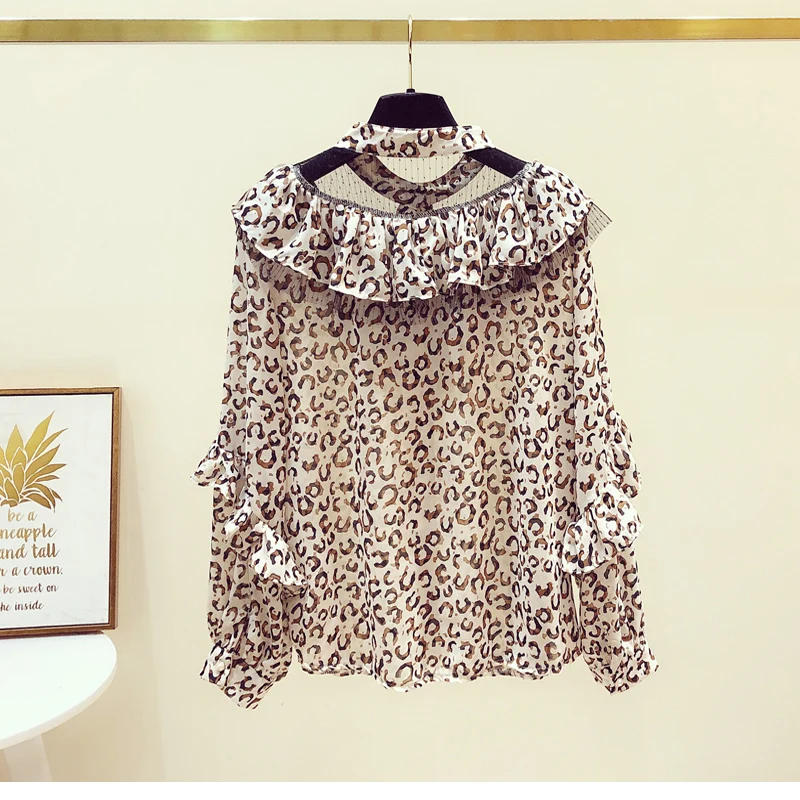 Женская весенне-осенняя рубашка Корейская сетчатая строченная блузка с V-образным вырезом и оборками новая шифоновая женская блузка с цветочным принтом топы LL911