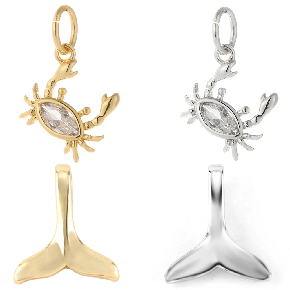 Очаровательные шармы для изготовления ювелирных изделий, золотые животные, краб, рыбий хвост, сделай сам, серьги, ожерелье, медная мозаика, циркониевые аксессуары