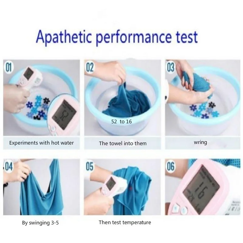 Это обычное спортивное полотенце. Нет охлаждающего эффекта, кроме воды. Вода капает после скручивания, что означает, что ткань не хорошо держит воду.