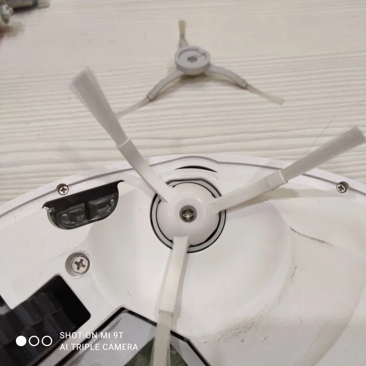Центральная кисть, не оригинальная, создает много шума, а боковая кисть слишком большая, а щетка на колесе и на центре кисти