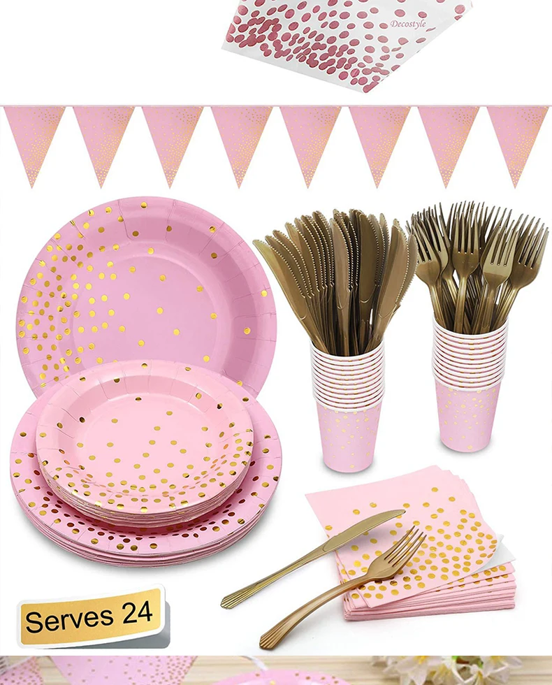 Номер моделиGold Gilded Dot Pink Disposable Tableware Kit