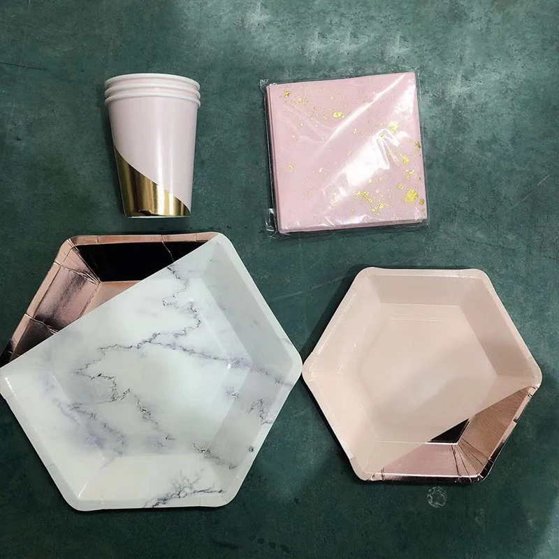 Розовое золото вечерние набор одноразовой посуды бумажные стаканчик...