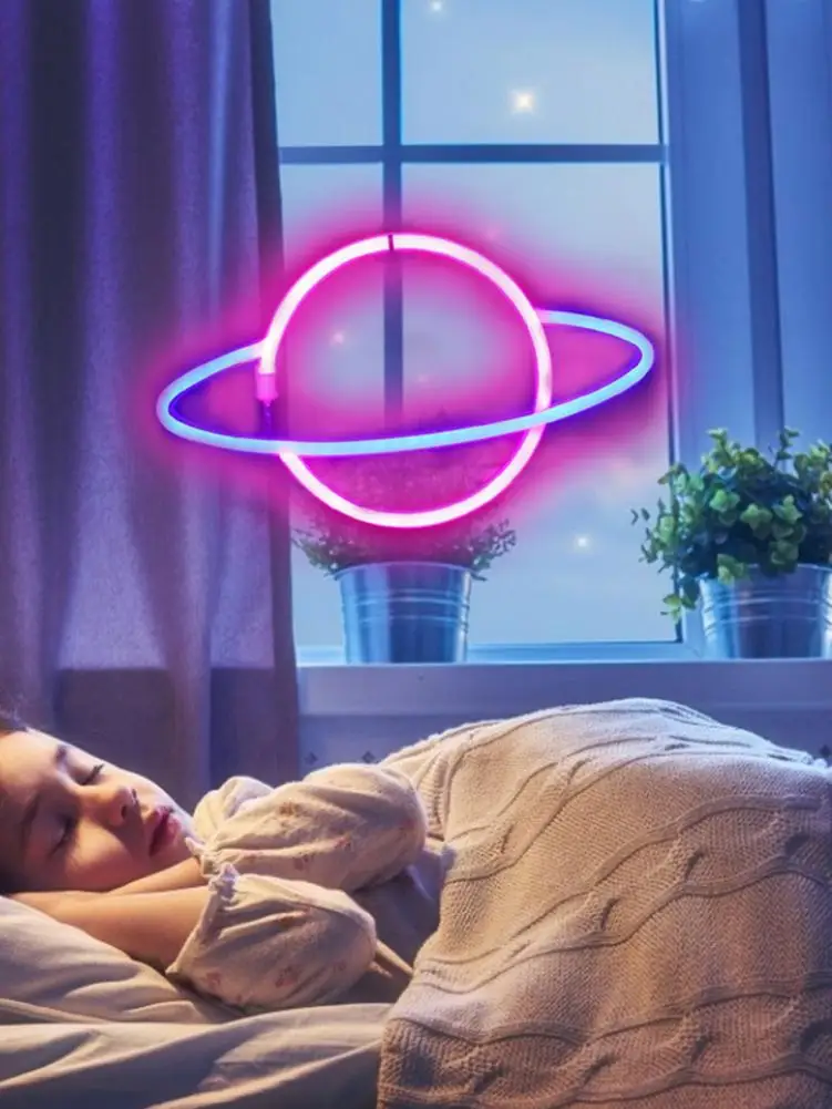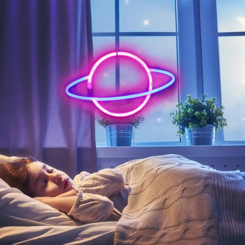 Неоновая вывеска Планета, вечерние ничный настенный светодиодный св...