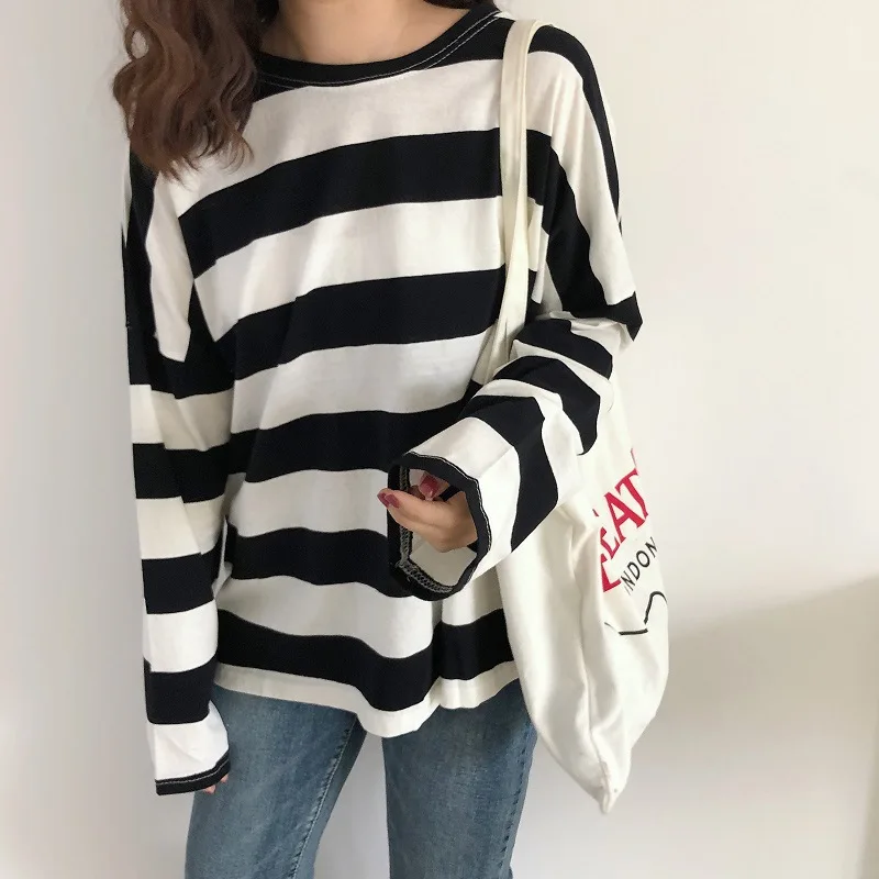 Повседневные полосатые футболки с длинным рукавом, Женские базовые ...