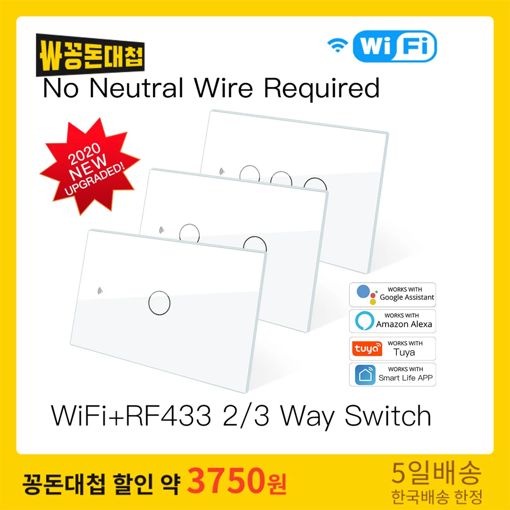 Умный светильник ель света MOES RF433 с Wi-Fi, без нейтрального провода, работает с Alexa Google Home 110220 В