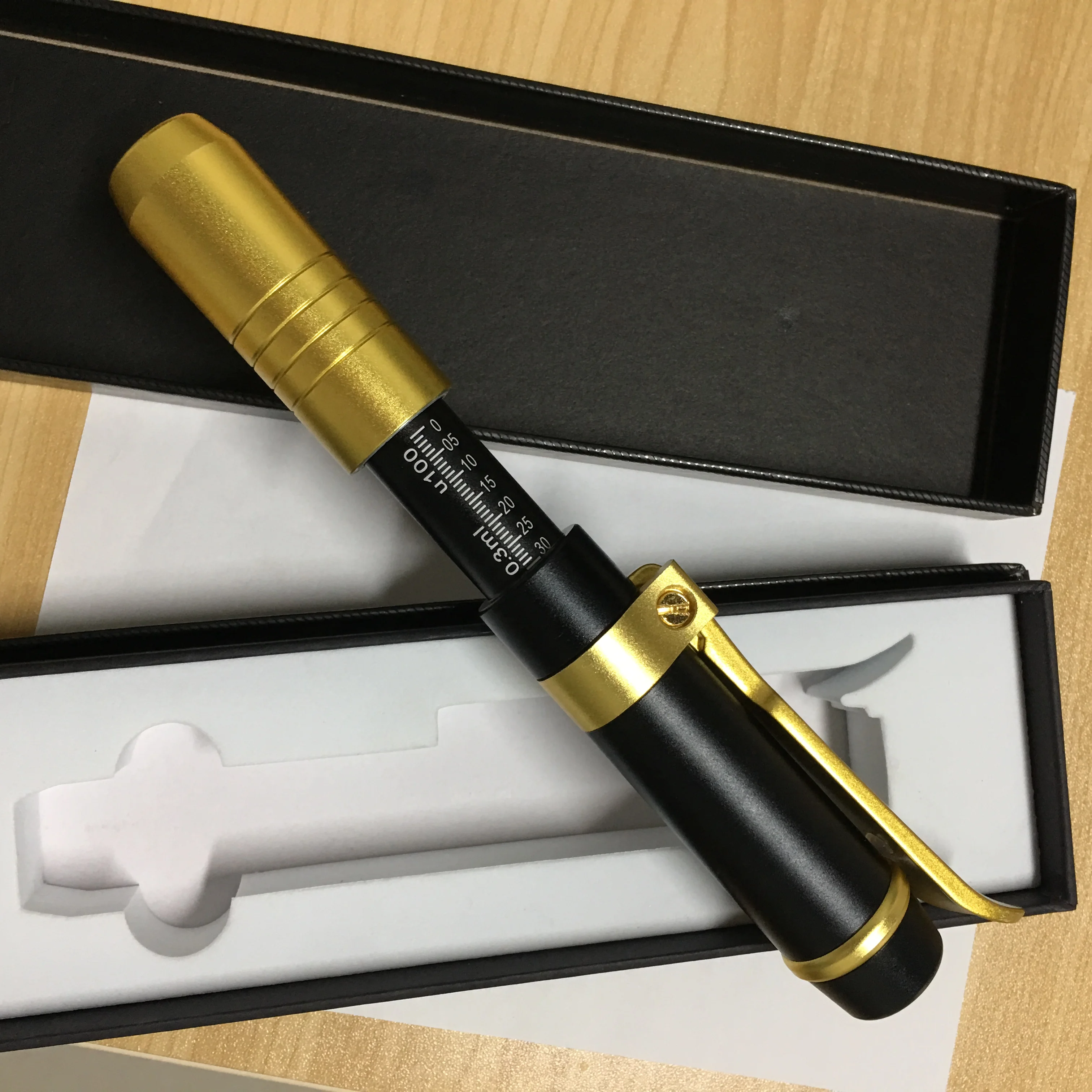 Описание товара: Тип: гиалуроновая ручка Характеристики: удаление кровеносных сосудов, омоложение кожи, темные круги, удаление морщин, потеря веса, увлажнение, отбеливание, увлажнение Материал: нержавеющая сталь 316 (Профессиональная Медицинская нержавеющая сталь) Объем: 0,3 мл/0,5 мл Режим работы: распыление высокого давления/мульти-съемка Глубина: 6-8 мм Давление: 7,4 Pa Операционное измерение: 0.010.12 мл Принцип работы: Пружина и поршень, которые позволяют под давлением, быстро и равномерно инъекционные наркотики под кожу через отверстие диаметром 0,1 мм, который находится в два раза меньше, чем иглы толщины для формовочной машины! С помощью энергии механического действия пружина и специальный поршень в аппарате позволяют, под давлением, быстро, но мягко толкая поток препарата через Микроскопическое отверстие в подкожной клетчатке. Препараты всасываются намного лучше и быстрее, чем с введением иглы, что было подтверждено в серии исследований и тестов, проводящихся в разных странах мира. Идеальное решение для тех, кто склонен к рубцам и подкожным клеткам. Преимущества гиалуроновой ручки: * Безболезненная инъекция * Инъекция без иглы устраняет риск заражения иглой * Не оставляет шрамов и следов от проколов кожи иглой * Лучшее и быстрое поглощение лекарственных средств * Строго Подкожная инъекция-устраняет риск проникновения препарата в мышцы * Быстрый, легкий и безопасный * Отдельная и экономичная дозировка препарата