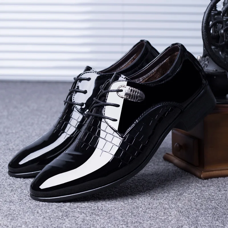 Мужские туфли из лакированной кожи, на шнуровке, удобные уличные вы...