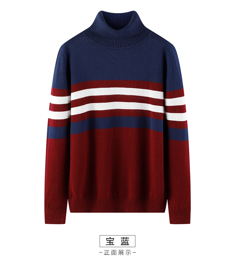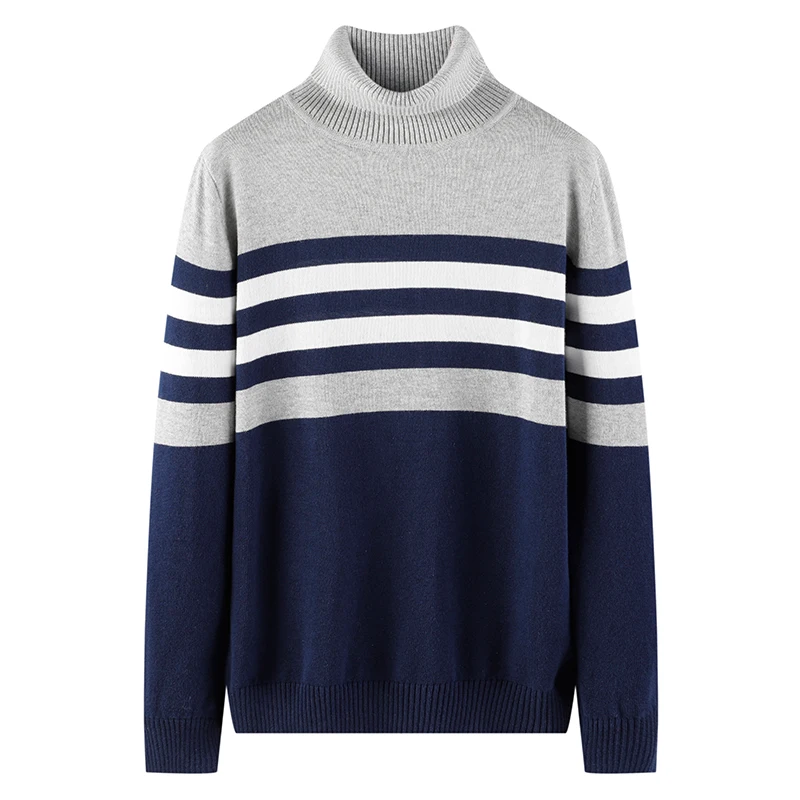 Varsanol CottonTurtleneck Sweater Men Casual Striped Pullovers Oversize Men's Clothing Slim Turtleneck Sweater for Men New 3XL