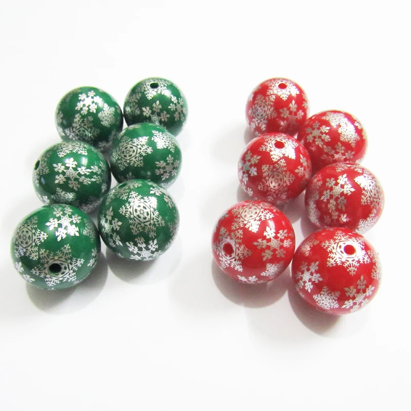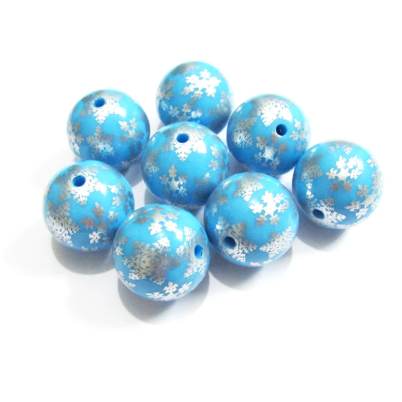 Новейший 20 мм 100 шт./пакет, акрил, принт с серебристыми снежинками, бусины для браслетов, Рождественская Детская Цепочки и ожерелья