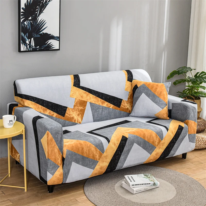Клетчатый эластичный чехол с принтом цветов и листьев, универсальный чехол для дивана из спандекса, чехол для дивана L-образной формы, защита от пыли для кресла