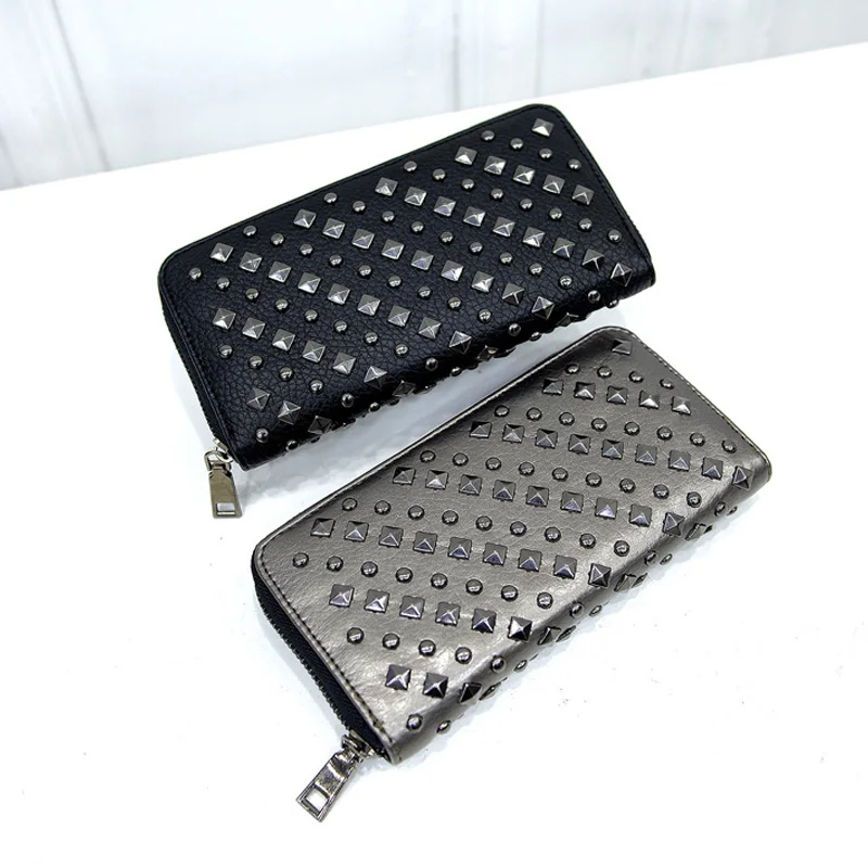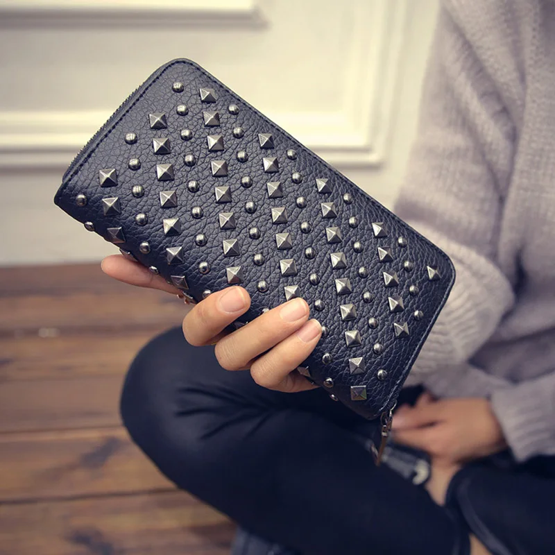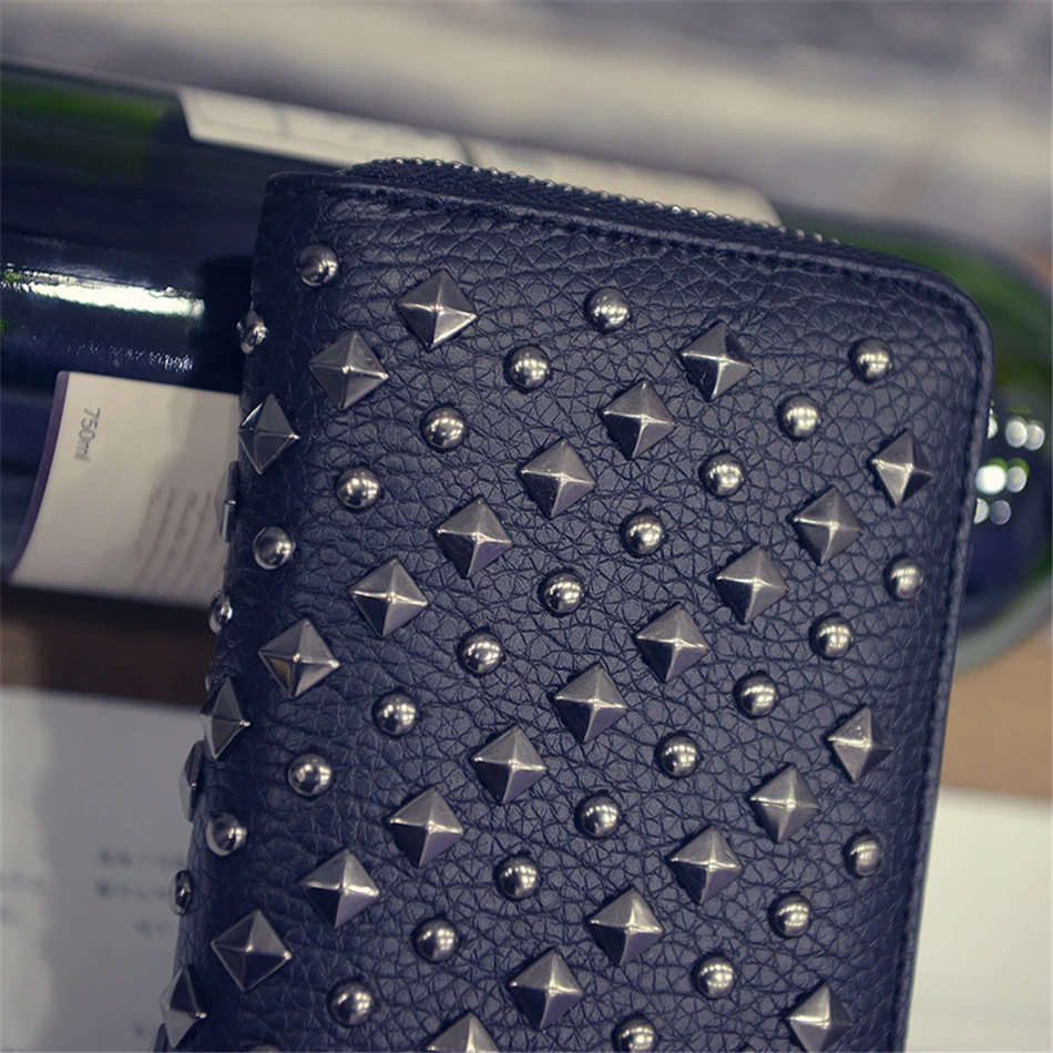 Длинный женский кошелек с заклепками на молнии кожаный кошелек женские роскошные кошельки для женщин винтажные женские кошельки с несколькими отделениями для карт