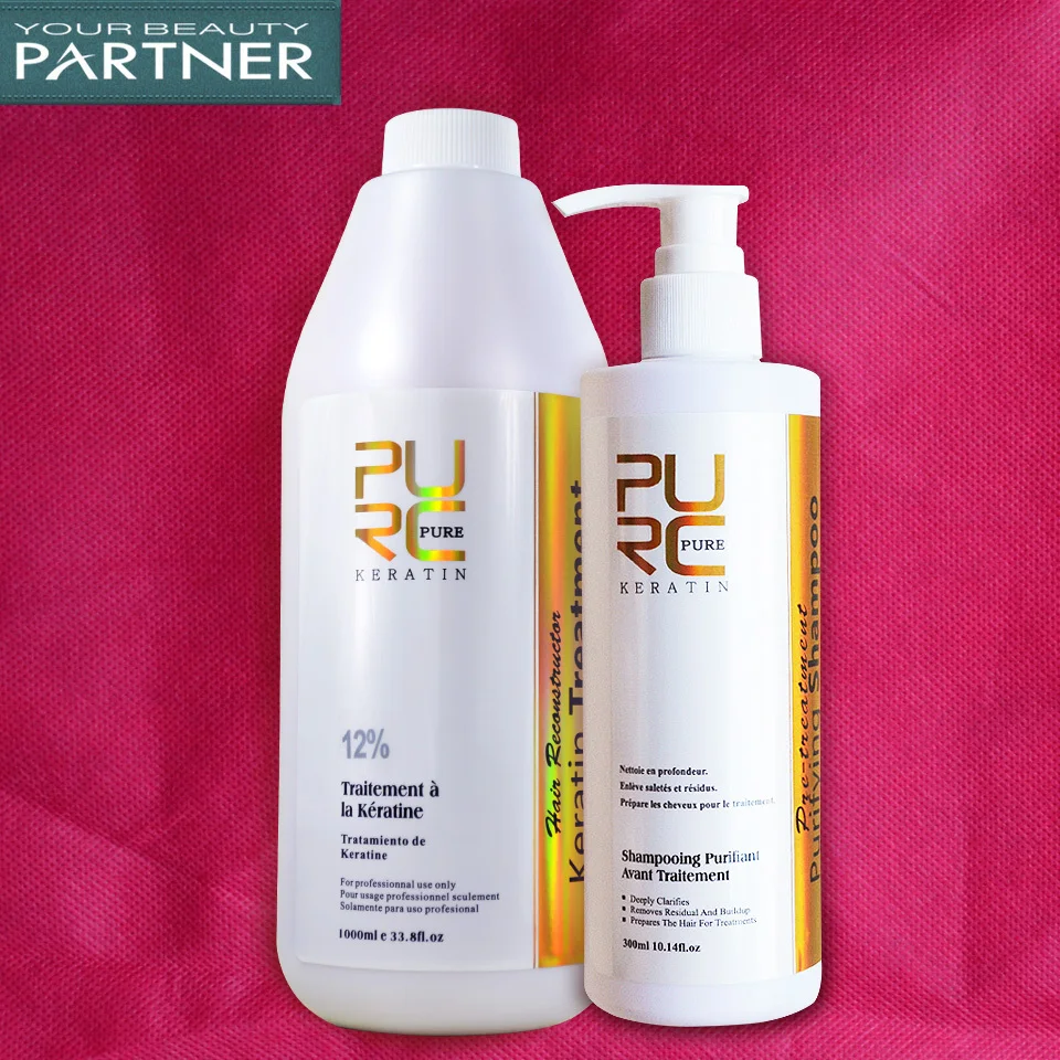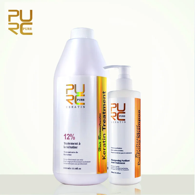 Бразильский шоколадный Кератиновый лечебный продукт PURC 1000 мл для выпрямления волос и очищающий шампунь 12% мл для ухода за волосами