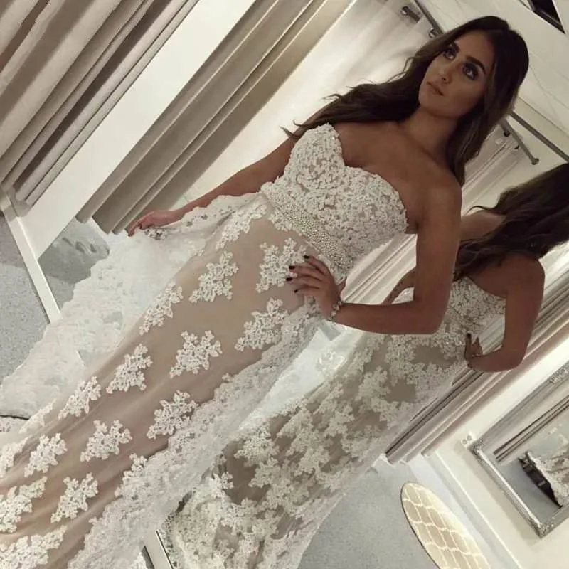 Женское свадебное платье с юбкой-годе, кружевное платье со съемным шлейфом и аппликацией из бисера, свадебное платье со съемным шлейфом