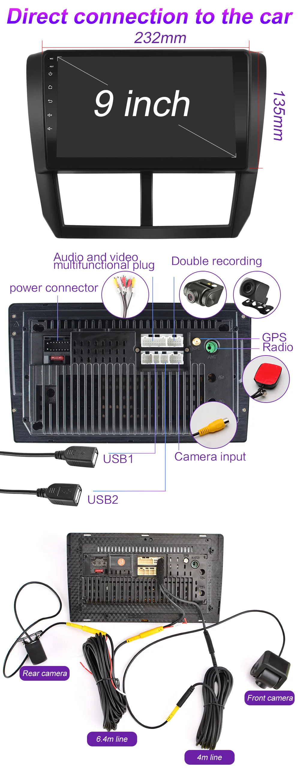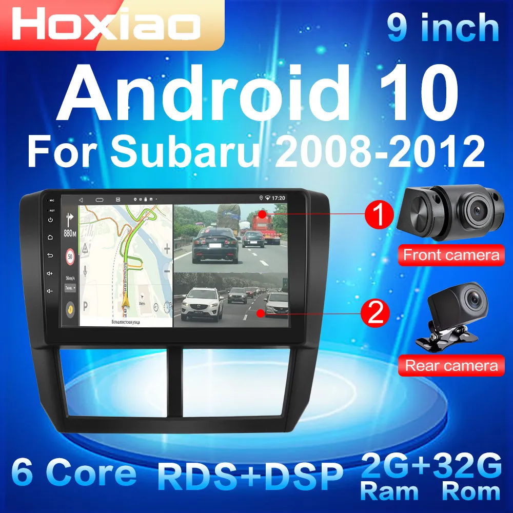Автомагнитола 2 Din, Android 10, 9 дюймов, с двумя объективами, радио, четырехъядерный процессор, WIFI, GPS, Bluetooth, мультимедиа для Subaru Forester Impreza 2008-2012