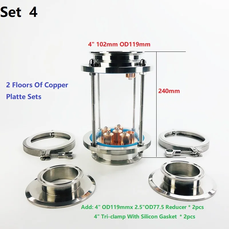 Новинка, 2 этажа, 4 дюйма, дистилляционная линза с медными наборами, тройной зажим, из нержавеющей стали 304