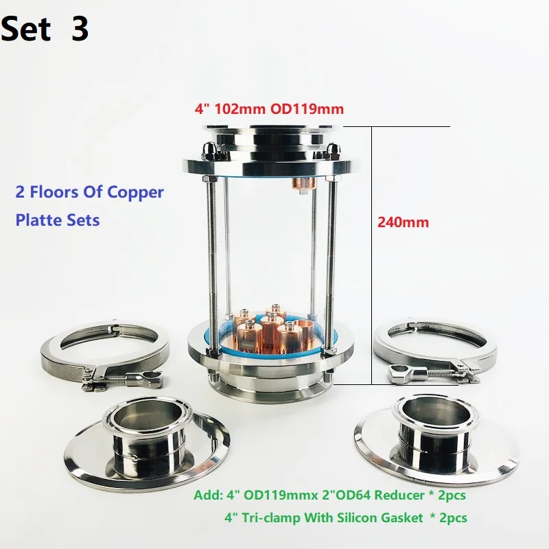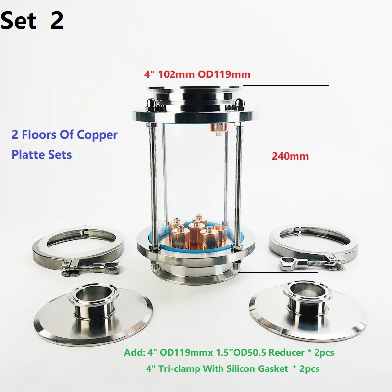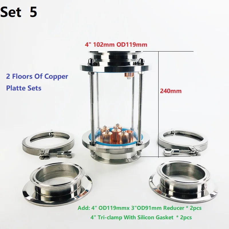 Новинка2 этажа 4 "дистилляционная колонна объектива с медным платтом наборы, Tri-Clamp Sight Glass Union из нержавеющей стали 304Комплект 11. Колонна из боросиликатного стекла, наружный диаметр110 мм, внутренний диаметр 100 мм,Высота160 мм-- 1 шт.2. Наборы медных пузырчатых пластин (медьПластина * 1, медная крышка * 5, медная потолочная установкаКрышка * 1)-- 2 шт.3. Резьбовой стержень с гайками SS304--4 комплектов4. 4 "102 мм od119мм трехзажимной фланецSS304 -- 2 шт.5. Специальная силиконовая прокладка для верхней и нижней частиФланец -- 2 шт.6. 4 "тройной зажим с силиконовой прокладкой -- 2 штКомплект 21. Колонна из боросиликатного стекла, наружный диаметр110 мм, внутренний диаметр 100 мм,Высота160 мм -- 1 шт.2. Наборы медных пузырчатых пластин (медьПластина * 1, медная крышка * 5, медная потолочная установкаКрышка * 1)-- 2 шт.3. Резьбовой стержень с гайками SS304--4 комплектов4. 4 "102 мм od119мм трехзажимной фланецSS304 -- 2 шт.5. Специальная силиконовая прокладка для верхней и нижней частиФланец -- 2 шт.6.Короткий тип тройного зажима редуктор 4 "(102 мм)OD119 x 1,5 "(38 мм) OD50.5, SS304 --- 2 шт.7. 4 "тройной зажим с силиконовой прокладкой -- 2 штКомплект 31. Колонна из боросиликатного стекла, наружный диаметр110 мм, внутренний диаметр 100 мм,Высота160 мм -- 1 шт.2. Наборы медных пузырчатых пластин (медьПластина * 1, медная крышка * 5, медная потолочная установкаКрышка * 1)-- 2 шт.3. Резьбовой стержень с гайками SS304--4 комплектов4. 4 "102 мм od119мм трехзажимной фланецSS304 -- 2 шт.5. Специальная силиконовая прокладка для верхней и нижней частиФланец -- 2 шт.6.Короткий тип тройного зажима редуктор 4 "(102 мм)OD119 x 2 "(51 мм) OD64, SS304 --- 2 шт.7. 4 "тройной зажим с силиконовой прокладкой -- 2 штКомплект 41. Колонна из боросиликатного стекла, наружный диаметр110 мм, внутренний диаметр 100 мм,Высота160 мм -- 1 шт.2. Наборы медных пузырчатых пластин (медьПластина * 1, медная крышка * 5, медная потолочная установкаКрышка * 1)-- 2 шт.3. Резьбовой стержень с гайками SS304--4 комплектов4. 4 "102 мм od119мм трехзажимной фланецSS304 -- 2 шт.5. Специальная силиконовая прокладка для верхней и нижней частиФланец -- 2 шт.6.Короткий тип тройного зажима редуктор 4 "(102 мм)OD119 x 2,5 "(63 мм) OD77.5, SS304 --- 2 шт.7. 4 "тройной зажим с силиконовой прокладкой -- 2 штКомплект 51. Колонна из боросиликатного стекла, наружный диаметр110 мм, внутренний диаметр 100 мм,Высота160 мм -- 1 шт.2. Наборы медных пузырчатых пластин (медьПластина * 1, медная крышка * 5, медная потолочная установкаКрышка * 1)-- 2 шт.3. Резьбовой стержень с гайками SS304--4 комплектов4. 4 "102 мм od119мм трехзажимной фланецSS304 -- 2 шт.5. Специальная силиконовая прокладка для верхней и нижней частиФланец -- 2 шт.6.Короткий тип тройного зажима редуктор 4 "(102 мм)OD119 x 3 "(76 мм) OD91, SS304 --- 2 шт.7. 4 "тройной зажим с силиконовой прокладкой -- 2 штКомплект 61. Колонна из боросиликатного стекла, наружный диаметр110 мм, внутренний диаметр 100 мм,Высота160 мм -- 1 шт.2. Наборы медных пузырчатых пластин (медьПластина * 1, медная крышка * 5, медная потолочная установкаКрышка * 1)-- 2 шт.3. Резьбовой стержень с гайками SS304--4 комплектов4. 4 "102 мм od119мм трехзажимной фланецSS304 -- 2 шт.5. Специальная силиконовая прокладка для верхней и нижней частиФланец -- 2 шт.6.Короткий тип тройного зажима редуктор 4 "(102 мм)OD119 x 3,5 "(89 мм) OD106, SS304 --- 2 шт.7. 4 "тройной зажим с силиконовой прокладкой -- 2 шт