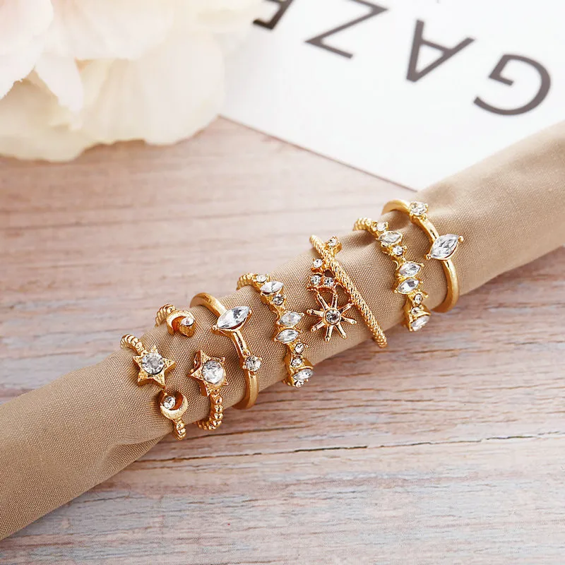 2020 женские ювелирные изделия, модные богемные золотые кольца для женщин, винтажные кольца на палец в форме Луны и звезды