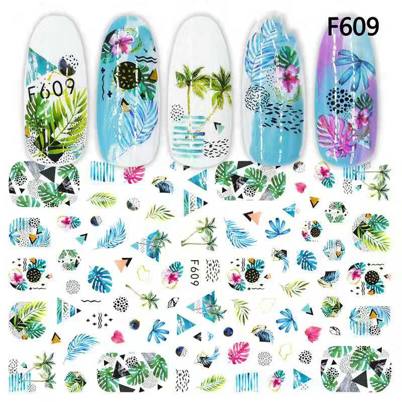 3D наклейки для ногтей, наклейки, цветок, лист, кокосовое дерево, украшения для ногтей, наклейки, слайдер, аксессуары для маникюра, украшения для ногтей