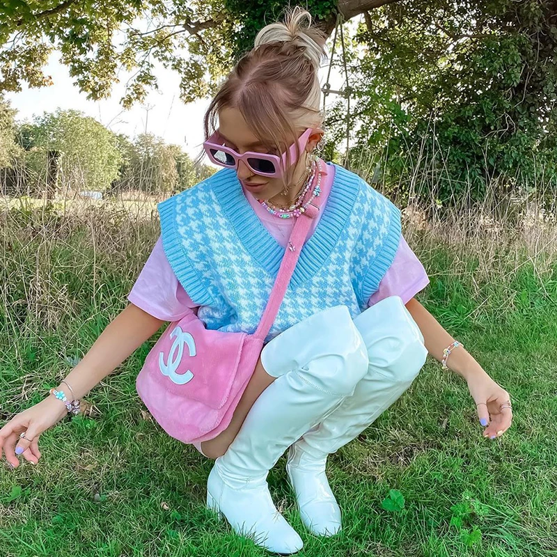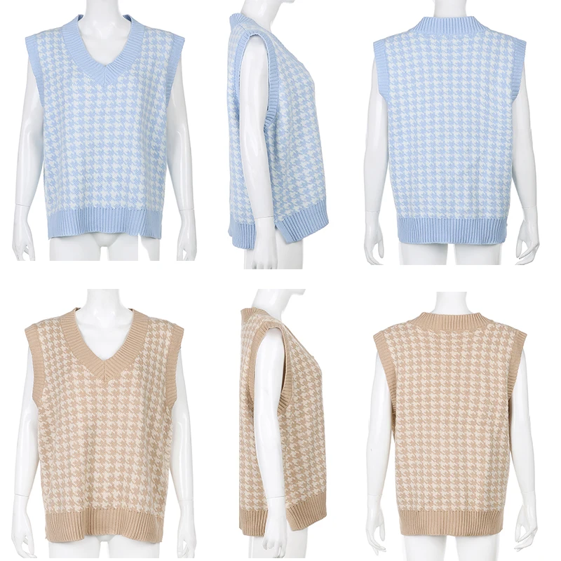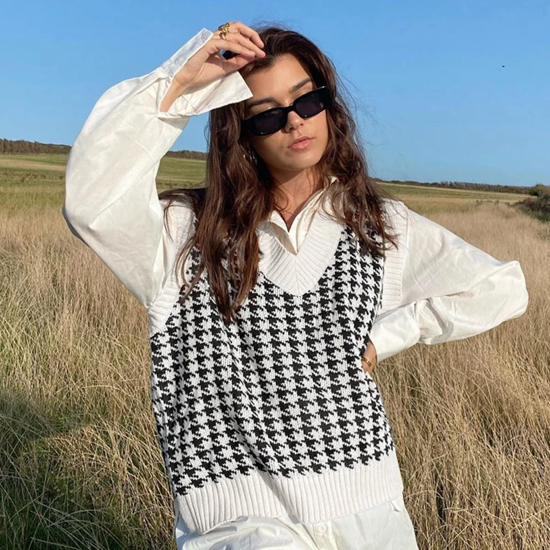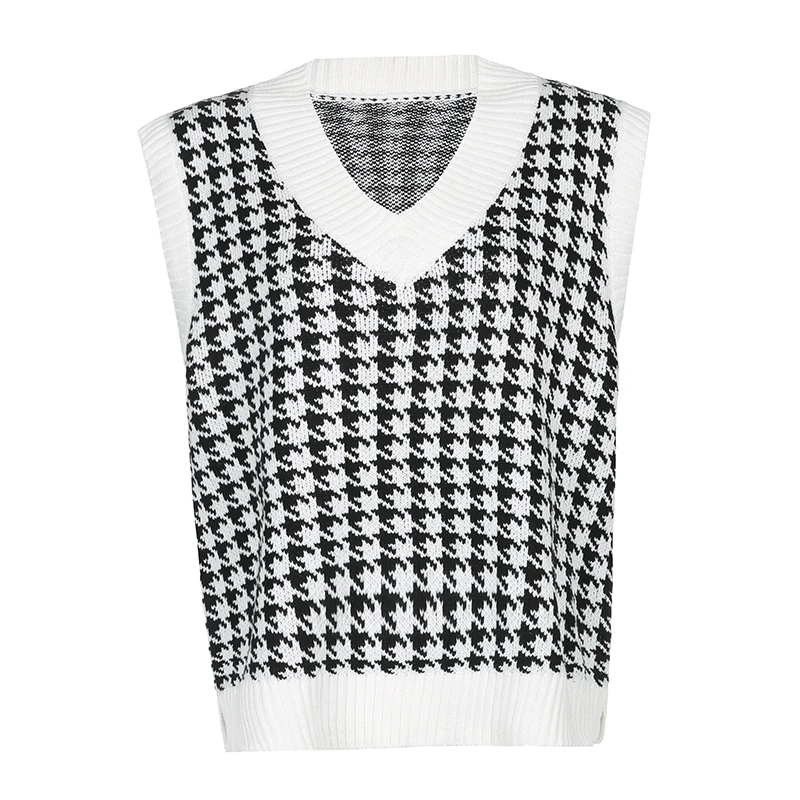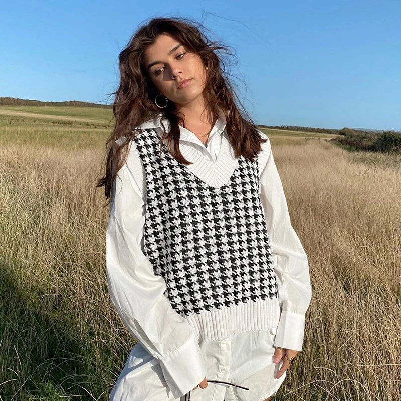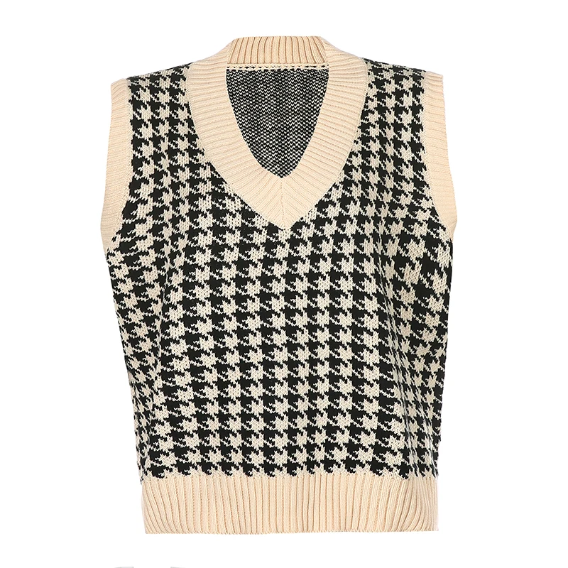 Топ женский вязаный клетчатый в шотландскую клетку с V-образным вырезом