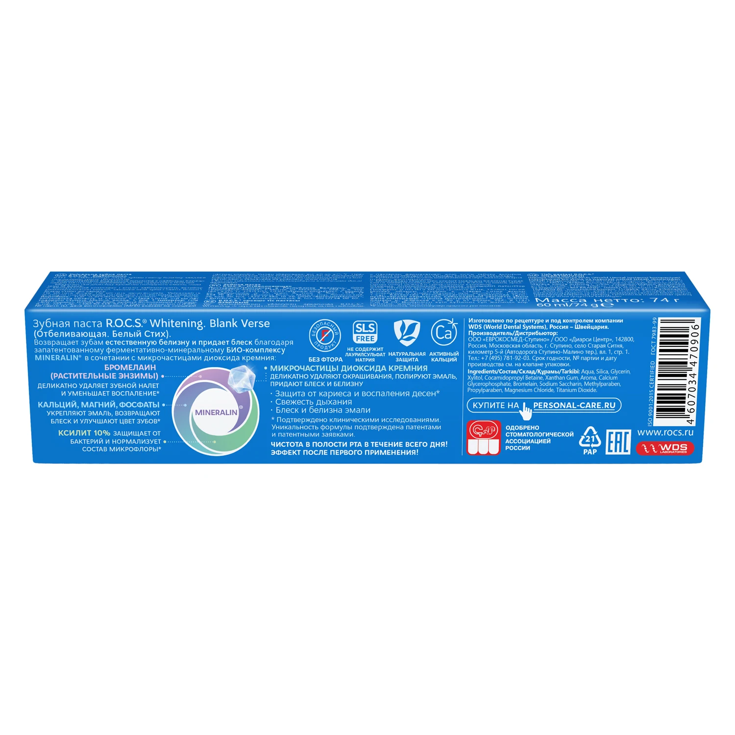 Решение проблемы Против кариеса Устранение неприятных запахов Освежающий эффект Очищение Очищающий эффект Тип / Консистенция Паста Назначение Для красоты Область применения Для полости рта Зона применения Для лица Фасовка (мл/г) 74гВНЕШНИЙ ВИД ТОВАРА