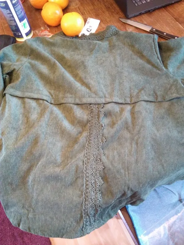это скорее вельветовая рубашка, материал неплохой, пошито тоже норм, был ярлычок с указаниями по стирке. Очень тонкая ткань, носить можно летом в прохладную погоду. Взяла размер побольше и расстроилась, т.к. это оказался очень большой размер. ну, и на картинке выглядит намного лучше. Рукава какие-то безформенные, с ними надо что-то делать, но хотя бы не короткие. Наверное, буду носить, если не подарю маме. денег своих не стоит. если бы видела в живую, не купила бы.