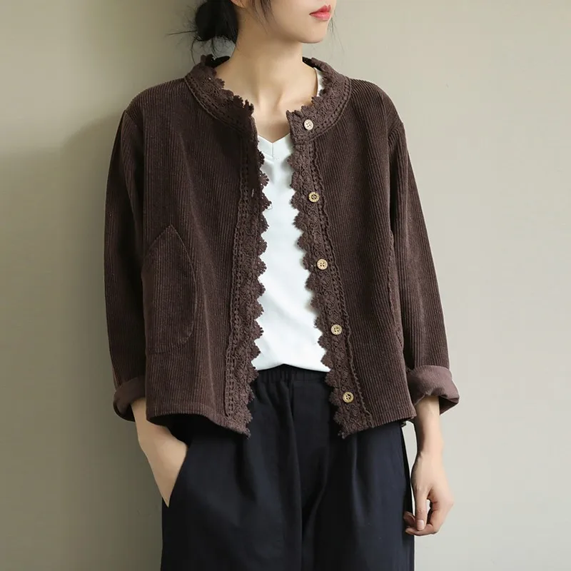 Женская Осенняя повседневная куртка, новинка 2020, винтажная Вельветовая однотонная Свободная Женская верхняя одежда в искусственном стиле, пальто P1481