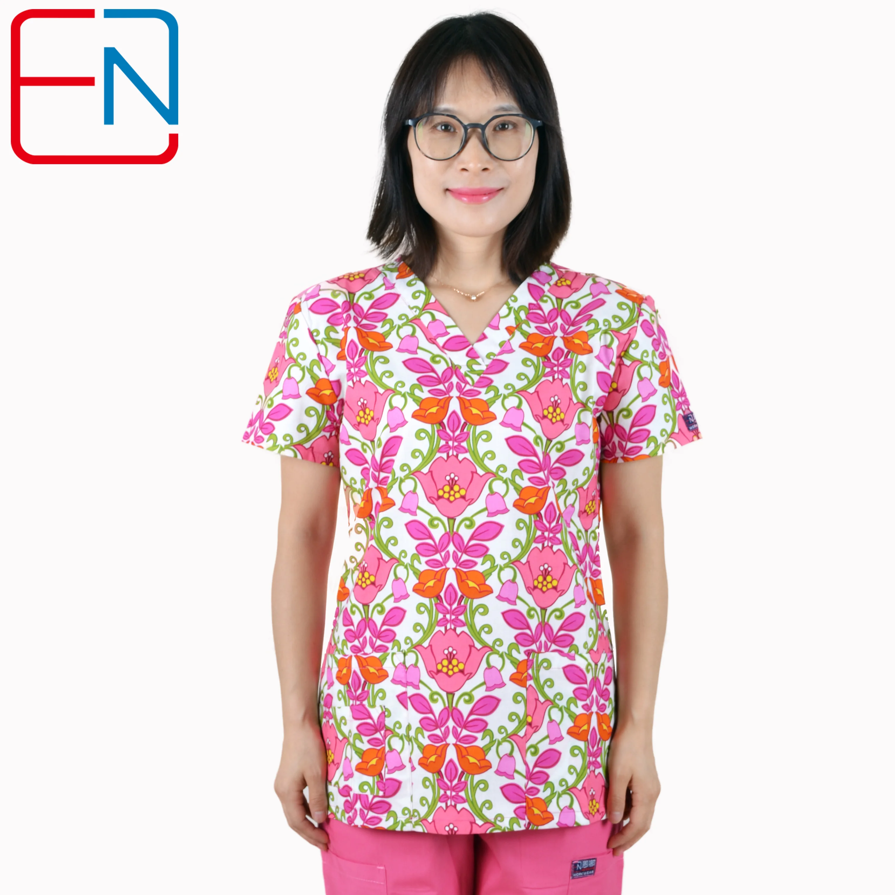 Полиэстер Прекрасный Принт Скраб Униформа для женщин дышащая с v-об...