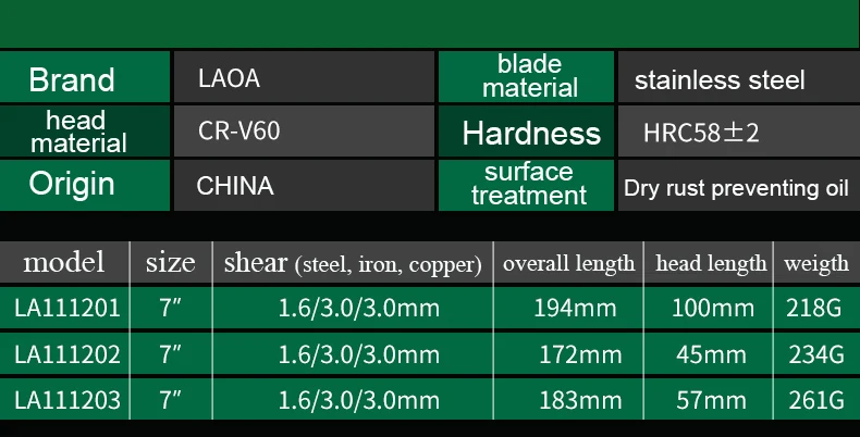 Многофункциональные кусачки LAOA 7 дюймов, диагональные плоскогубцы, рыболовные плоскогубцы с длинным носом, инструменты электрика