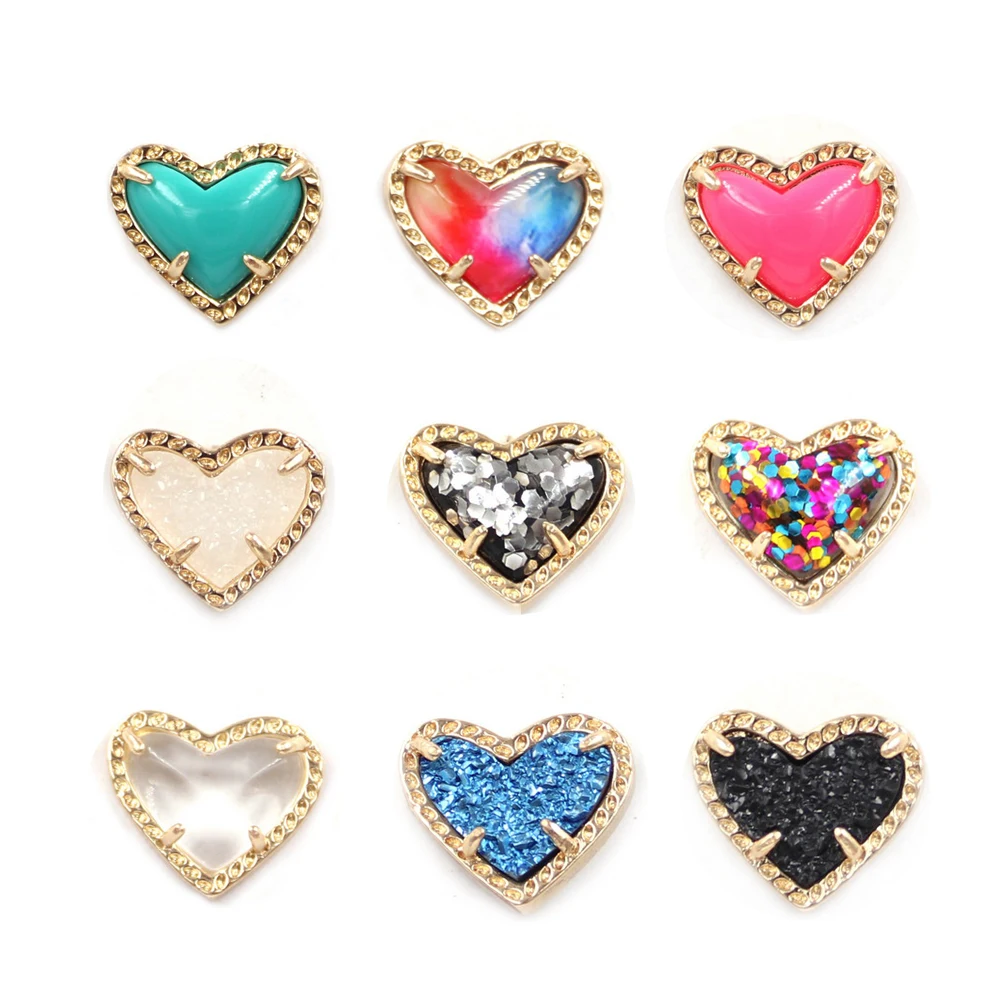 Серьги-гвоздики женские, разноцветные геометрические Блестящий глиттер в виде сердечек