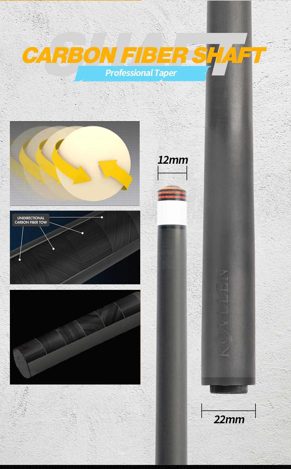 KONLLEN кий углеродная энергия, сигналы Carom с 3 подушками, карбоновое волокно, сигнальный вал Carom 12 мм, см, радиальные контакты, технологии соединения