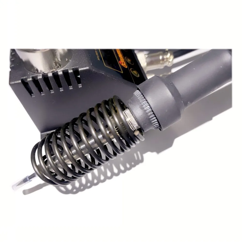Это совершенно новая паяльная станция 2 в 1 SMD 8858DP. Корпус из сплава и высококачественного силикона отличается элегантным внешним видом и энергосбережением. Можно использовать Термофен и паяльник по отдельности, без помех друг с другом.Из-за ручки с сенсорным переключателем система может быстро получить доступ к режиму работы во время захвата ручки.В то же время система будет переведена в режим ожидания при отключении ручки. Особенно подходит для монтажа и переделки SMD компонентов вручную. Очень просто!