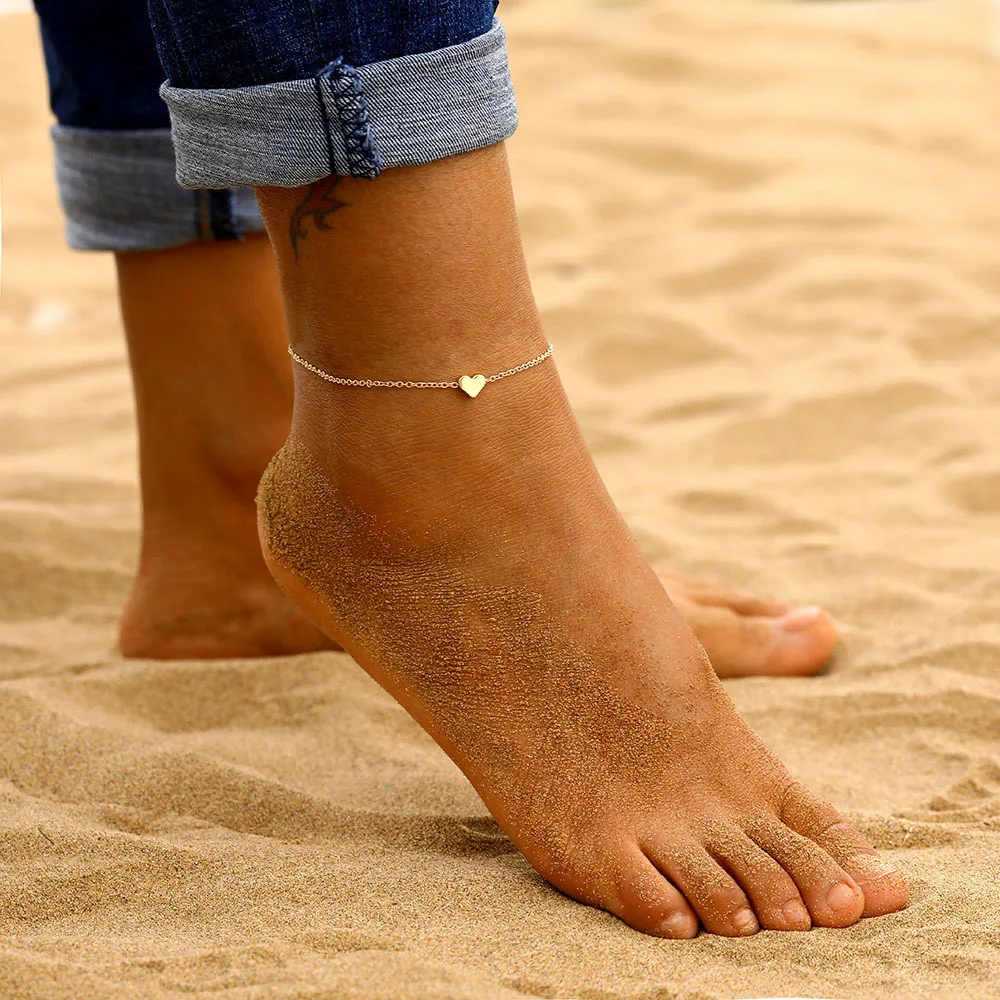 Новый пляжный сексуальный золотистый браслет на лодыжку с сердечкам...
