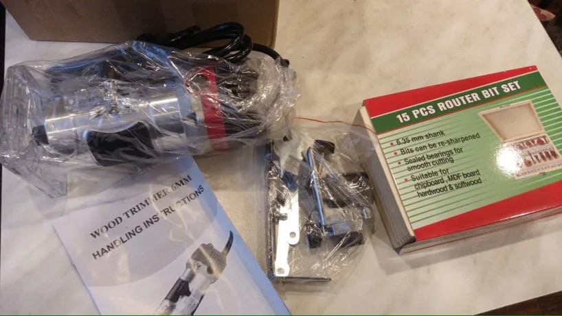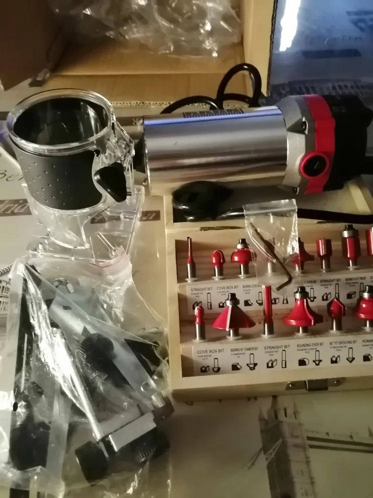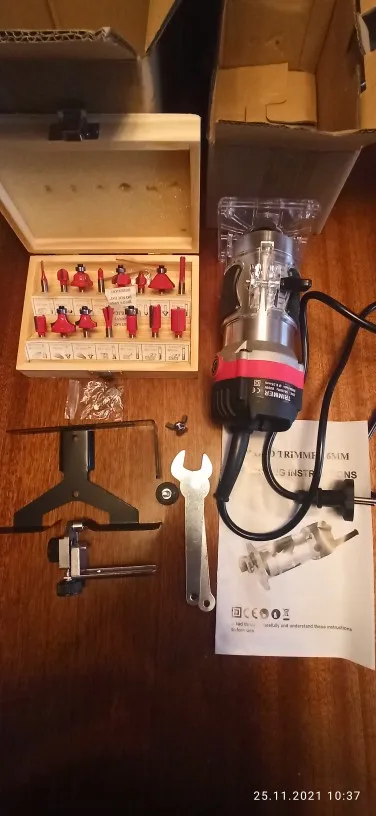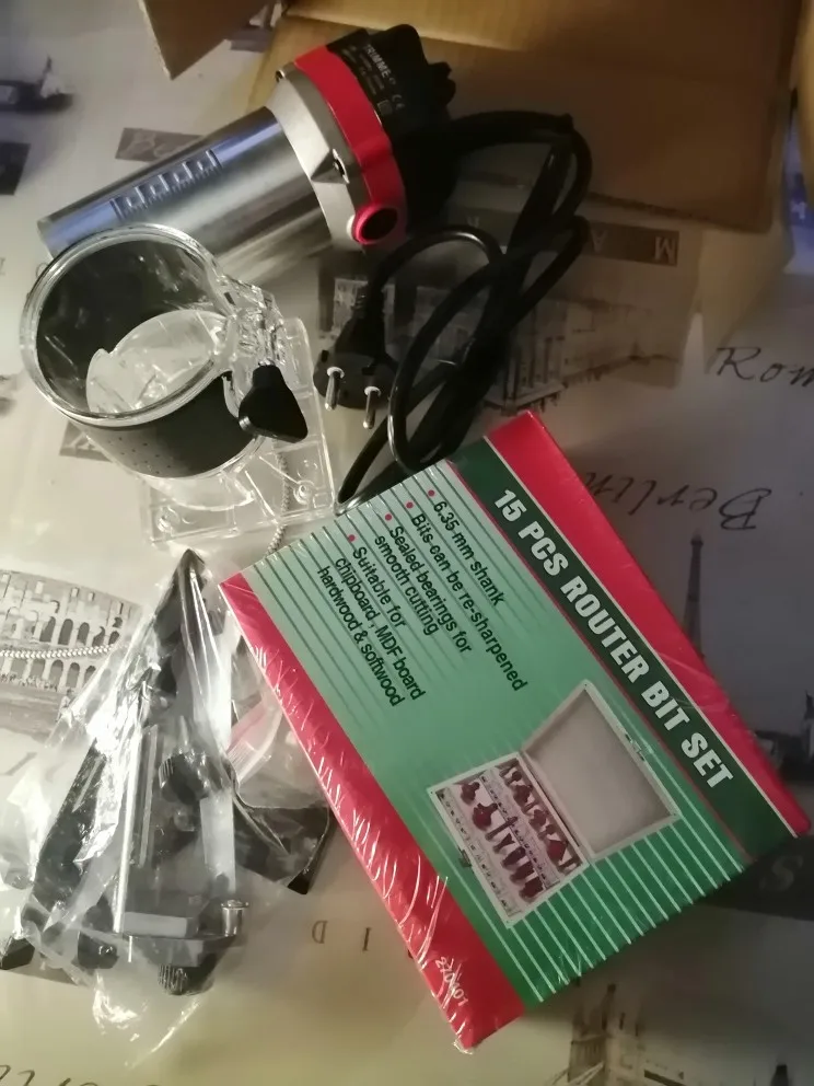 доставка 10 дней, привез курьер dpd. Всё упаковано весьма надёжно, и фрезер и сами фрезы. Китайцы решили добавить гламура и коробочку для фрез сделали деревянную. Качество изготовления того что пришло не вызывает отвращения, по крайней мере внешне. Всё весьма прилично. В работе не проверял. Руки пока не дошли.